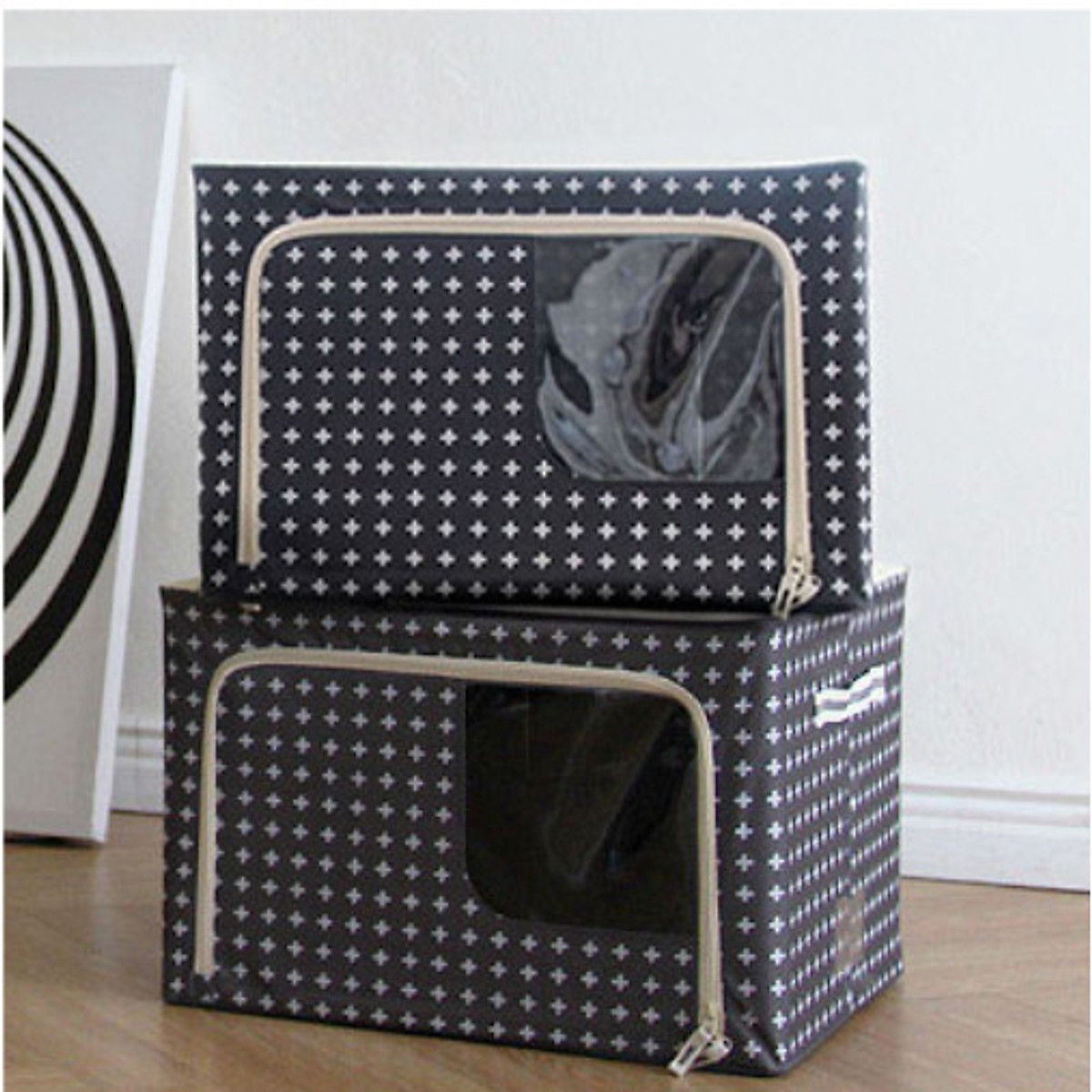 -Túi đựng chăn màng quần áo caro sọc trắng đen có dây kéo , có thể gấp gọn tiện lợi tiện lợi - Xuất xứ : Trung Quốc - Kích thước : 50 x 50