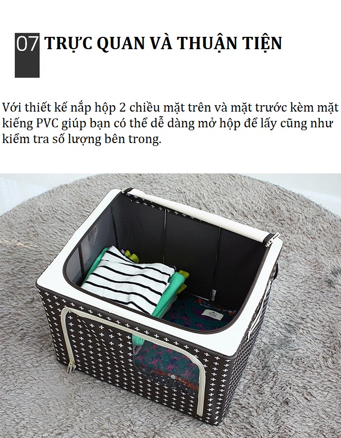 Hộp vải với khung cứng cáp sẽ mang đến rất nhiều tiện ích giành cho mọi người, nó vừa có thể đựng đồ dùng cá nhân, đồ dùng văn phòng, quần áo, đồ lót, tất,