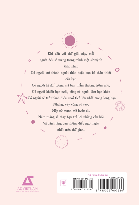 Từ Vũ Trụ Đến Trái Tim - Những Thông Điệp Yêu Thương Khi đến với thế giới này, mỗi người đều sẽ mang trong mình một sứ mệnh khác nhau. Có người trở thành người thân hoặc bạn bè thân thiết của bạn; Có người lại là đối thượng mà bạn thầm thương; Có người khiến bạn cười, cũng có người khiến bạn khóc; Có người trở thành điều tuối tiếc lớn nhất trong lòng bạn… Nhưng, như vậy cũng có sao. Hãy tiếp tục mạnh mẽ mà bước đi. Năm tháng sẽ thay bạn trả lời cho những câu hỏi, và Vũ trụ sẽ mang đến cho bạn những điều ngọt ngào nhất thế gian.