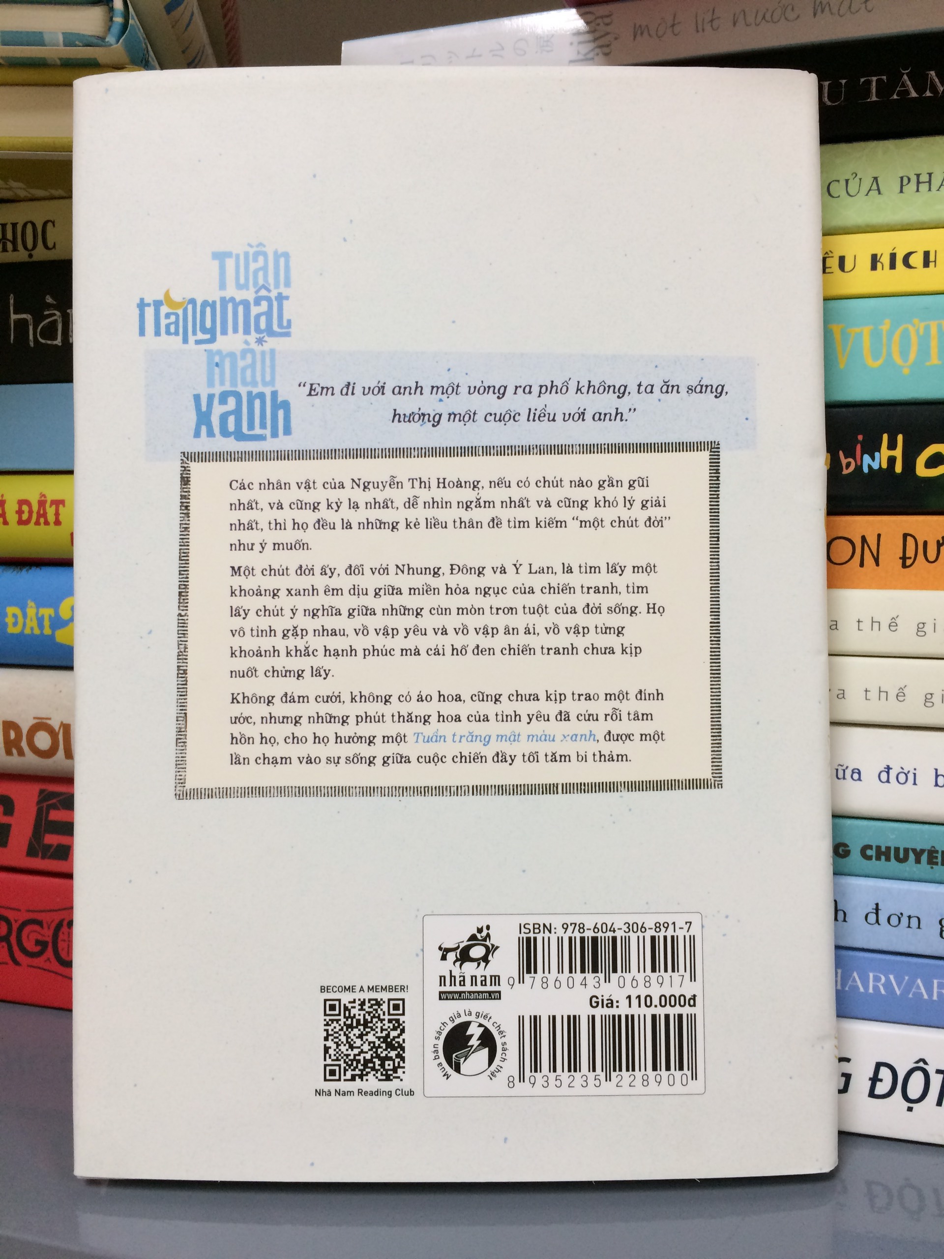 GIỚI THIỆU SÁCH: “Em đi với anh một vòng ra phố không, ta ăn sáng, hưởng một cuộc liều với anh.”Các nhân vật của Nguyễn Thị Hoàng, nếu có chút nào gần gũi nhất, và cũng kỳ lạ nhất, dễ nhìn ngắm nhất và cũng khó lý giải nhất, thì họ đều là những kẻ liều thân để tìm kiếm “một chút đời” như ý muốn.Một chút đời ấy, đối với Nhung, Đông và Ý Lan, là tìm lấy một khoảng xanh êm dịu giữa miền hỏa ngục của chiến tranh, tìm lấy chút ý nghĩa giữa những cùn mòn trơn tuột của đời sống. Họ vô tình gặp nhau, vồ vập yêu và vồ vập ân ái, vồ vập từng khoảnh khắc hạnh phúc mà cái hố đen chiến tranh chưa kịp nuốt chửng lấy.Không có đám cưới, không có áo hoa, cũng chưa kịp trao một đính ước, nhưng đối với họ, tình yêu và những phút thăng hoa của tình yêu đã cứu rỗi, nâng đỡ tâm hồn họ, kịp cho họ hưởng một tuần trăng mật màu xanh, cho họ được một lần chạm vào sự sống giữa cuộc chiến đầy chết chóc và tối tăm.