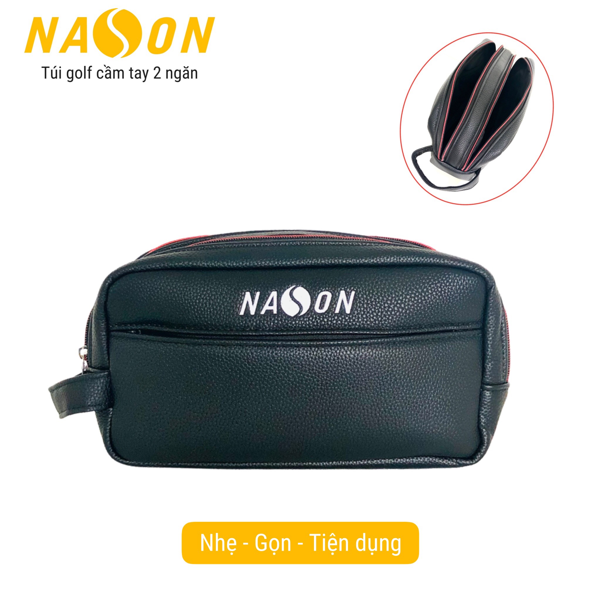 - Được thiết kế với không gian tối ưu, túi cầm tay golf Nason sẽ giúp các golfer thoải mái đựng bóng golf, tee và phụ kiện cá nhân.