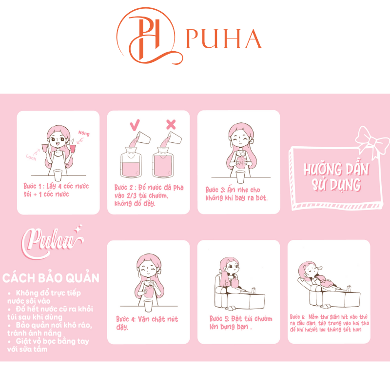 Mô Tả Sản Phẩm Túi chườm nóng lạnh đa năng PUHA 500ml, túi chườm bụng kinh giảm đau cho nữ, món quà ý nghĩa tặng bạn gái - Dung tích: 500ml - Kích thước: 14