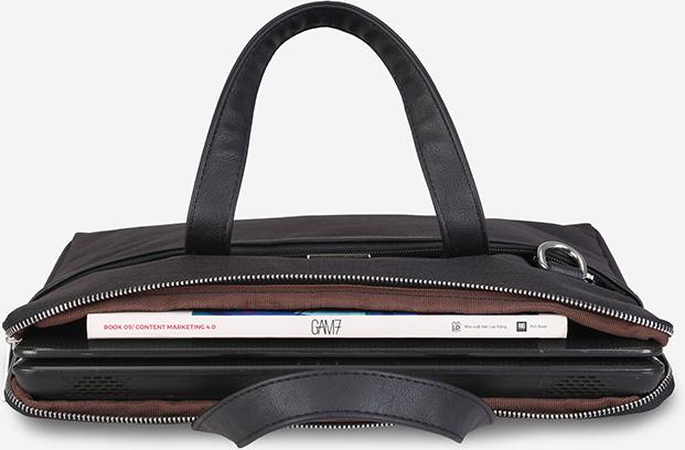 - Dành cho người phải đem nhiều giấy tờ nhưng không muốn trông rườm rà, khệ nệ với 1 chiếc túi xách quá khổ. Túi đa dụng có thể dùng như chiếc cặp xách đựng laptop hoặc dùng như 1 chiếc túi đeo vai/đeo chéo với dây đeo dài. Trọng lượng túi chỉ 580 gram. Gam màu hiện đại, chất liệu vải bố kết hợp với da tổng hợp có độ mềm cứng vừa phải, bền màu theo thời gian, đường may chắc chắn. Chất liệu vải bố dầy dặn cùng với chất da tổng hợp có khả năng chống trầy xước nhẹ, dễ dàng vệ sinh túi sau khi sử dụng. Phom túi cứng cáp vừa phải, giúp túi không bị cong vênh, nhăn gẫy khi sử dụng. Bên trong túi có 1 ngăn chính có lớp lót chống sốc đựng được các dòng laptop dưới 14inch, sách vở hay giấy tờ khổ A4, cục sạc máy tính. Ngoài ra bên trong túi còn có 2 ngăn phụ và 1 ngăn kéo nhỏ đựng được chìa khoá, thẻ xe, tai nghe, khăn giấy… Ngoài trước túi có 1 ngăn kéo có thể để được ví tiền, điện thoại, sổ tay, bút viết. Túi rất thích hợp sử dụng để đi làm, đi học hay đi công tác. Túi có khóa kéo ngăn chính làm bằng khoá kim loại 2 chiều cao cấp cùng khoá kéo nhựa ở ngăn phụ hoạt động mượt mà và trơn tru. Phần dây đeo bằng da của cặp có độ dài 120cm, thoải mái điều chỉnh chiều dài dây đeo, phù hợp với vóc dáng của mỗi người. Phần tay cầm bằng da tiện lợi giúp cầm xách dễ dàng và thuận tiện trong mọi trường hợp. Túi có thể kết hợp được với nhiều loại trang phục khác nhau giúp bạn linh hoạt đa phong cách. CAM KẾT: