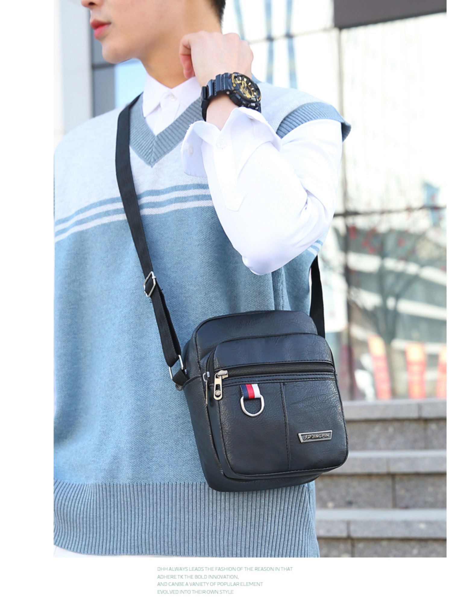 Túi Đeo Chéo Da Nam Thời Trang Cao Cấp, Túi Đeo Nhiều Lớp Có Dây Kéo.