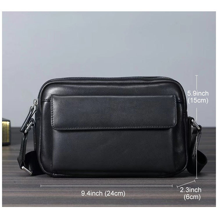 Túi đeo chéo nam ngang nhỏ BHM6088 Da bò thật - Mỏng - Gọn