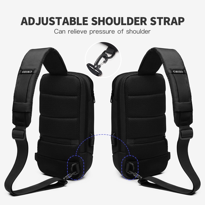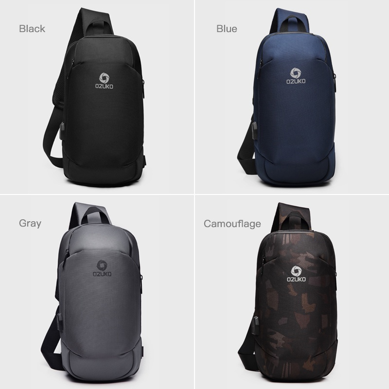 ✨Túi đeo chéo trước ngực OZUKO chống thấm nước có cổng sạc USB thời trang dành cho nam