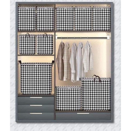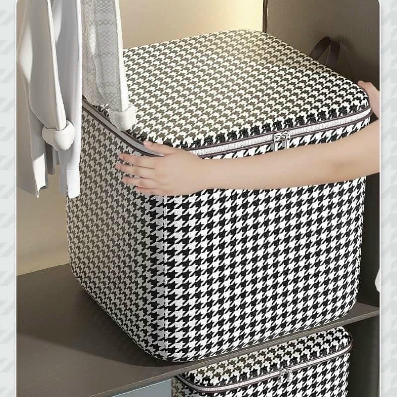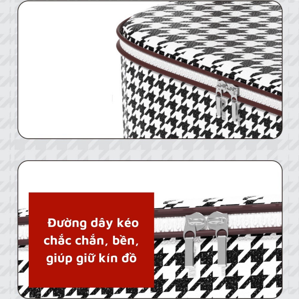 -Giỏ đựng chăn màng quần áo đa năng , họa tiết caro sọc trắng đen cao cấp ,có dây kéo ,quai cầm giúp tiện lợi trong việc cầm , xách di chuyển tiết kiệm không