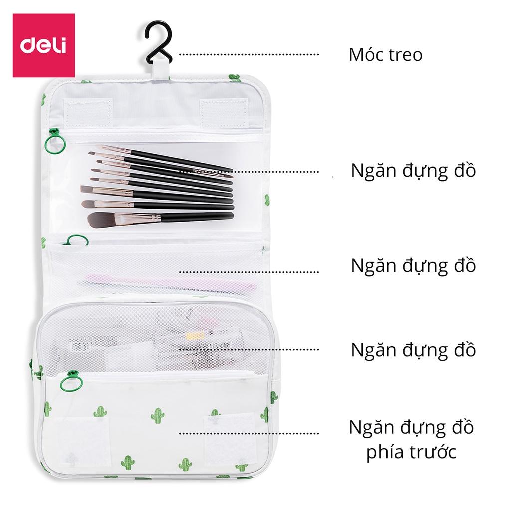 • Tên sản phẩm: Túi đựng mỹ phẩm du lịch có móc treo Deli, túi đựng đồ cá nhân đồ trang điểm đa năng chống thấm nước