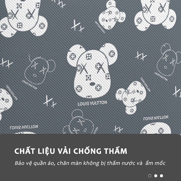 Mua tại TiktokTHÔNG TIN SẢN PHẨM Chất liệu: Vải polyester Kích thước: 48 x 44 x48cm Màu sắc: Nâu/Xám Túi đựng chăn ga, quần áo hình gấu có khóa kéo cao cấp góp phần trang trí, làm không gian rộng rãi thoáng mát hơn, có nhiều diện tích để đồ vật hơn. Giúp bảo quản quần áo tránh ẩm mốc và bụi bẩn bên ngoài. Ưu điểm nổi bật Túi đựng quần áo chăn màn size lớn có khoá kéo cao cấp