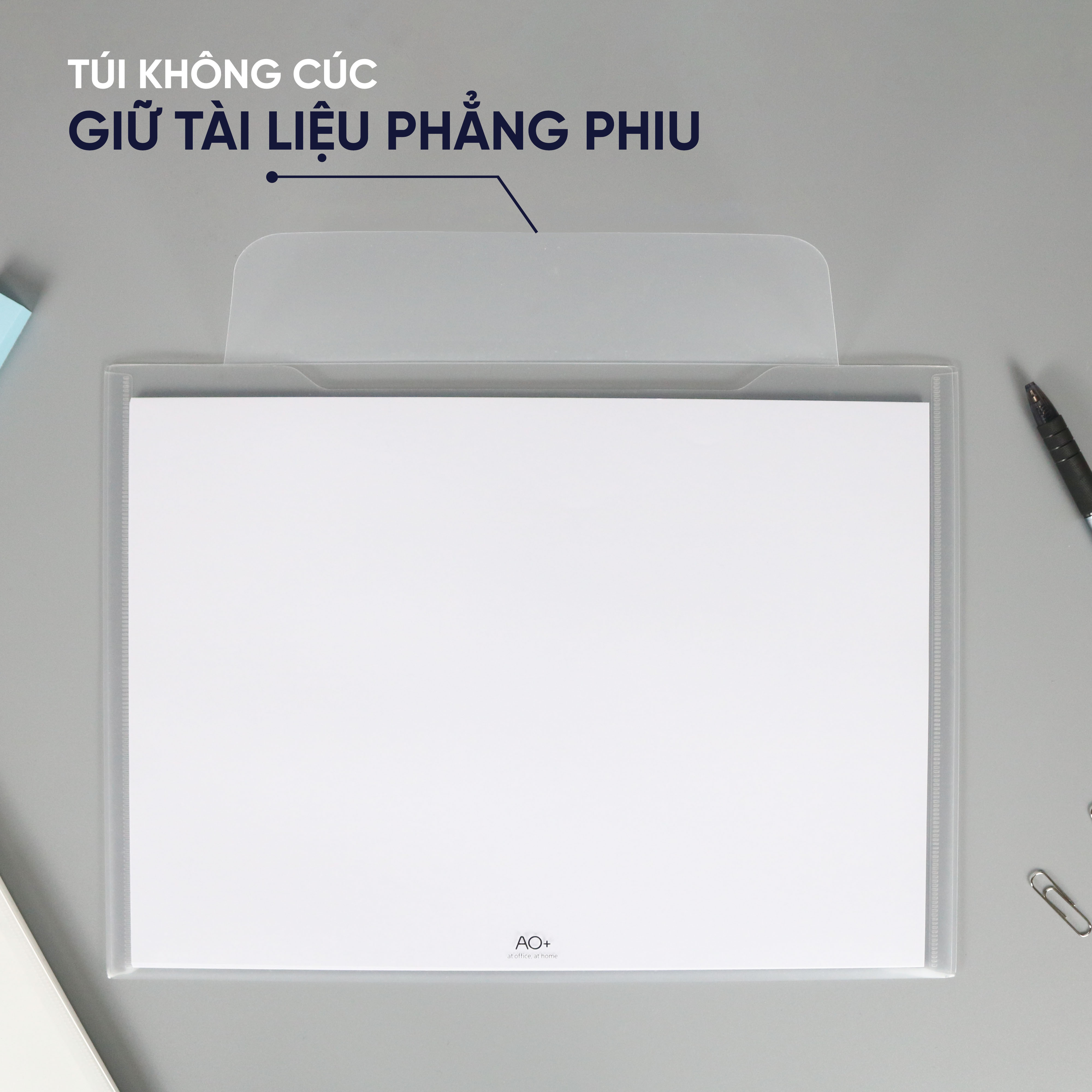 ĐẶC TÍNH NỔI BẬT: - Túi không khuy cài giúp giữ tài liệu phẳng phiu, không bị hằn vết - Hai màu thanh lịch, các góc bo tròn an toàn cho tay khi sử dụng
