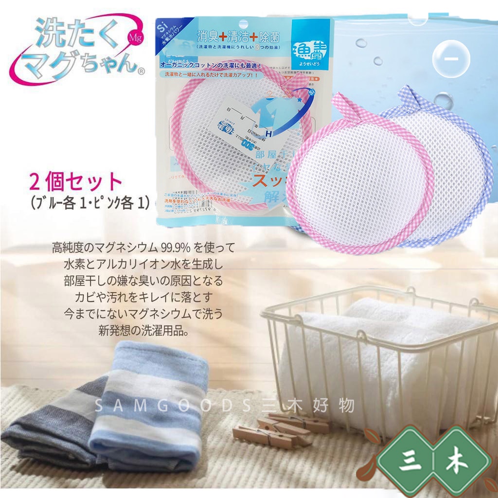 - Chất liệu:MAGNESIUM, (body) 100% polyester, (bag inside) 100% nylon ● Magiê tinh chất (là nguyên tố cần thiết cho cơ thể con người & môi trường) khi tác dụng với nước tạo ra nước ion kiềm chứa hyđrô có khả năng LÀM SẠCH & KHỬ MÙI HÔI quần áo lẫn lồng máy giặt, TIÊU DIỆT & NGĂN NGỪA SỰ PHÁT TRIỂN CỦA VI KHUẨN