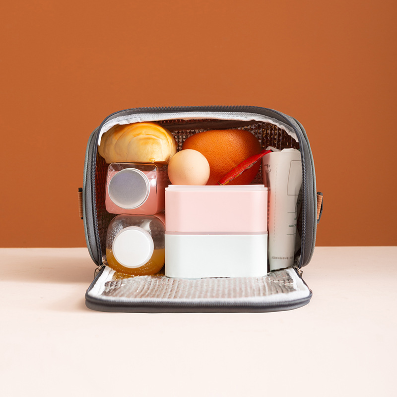 Túi đựng hộp cơm giữ nhiệt chống thấm thiết kế khóa kéo, có quai xách tiện lợi
