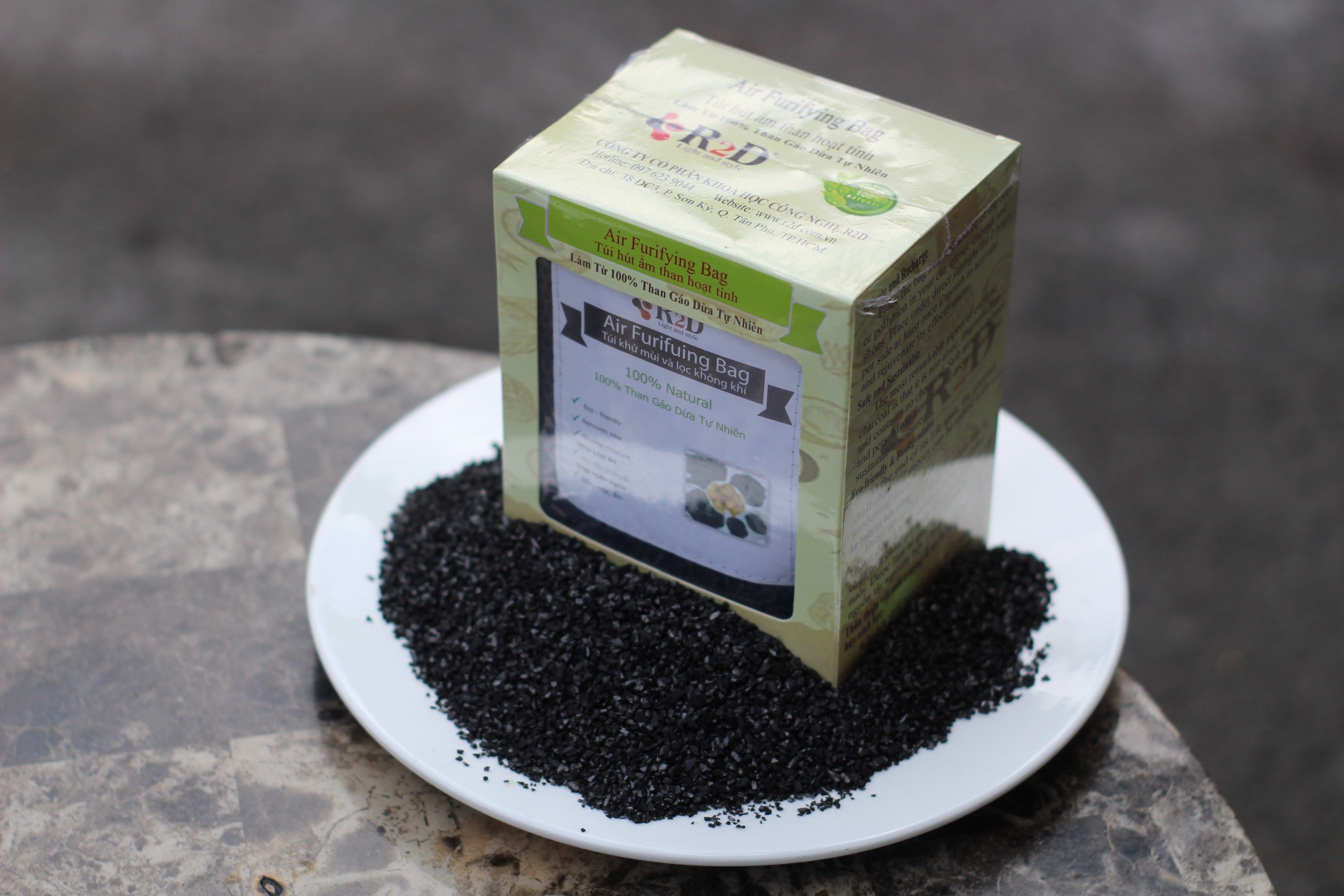 ✨Túi hút ẩm than hoạt tính gáo dừa khử mùi và lọc không khí cho xe hơi chính hãng R2D (hộp 2 túi Lớn)