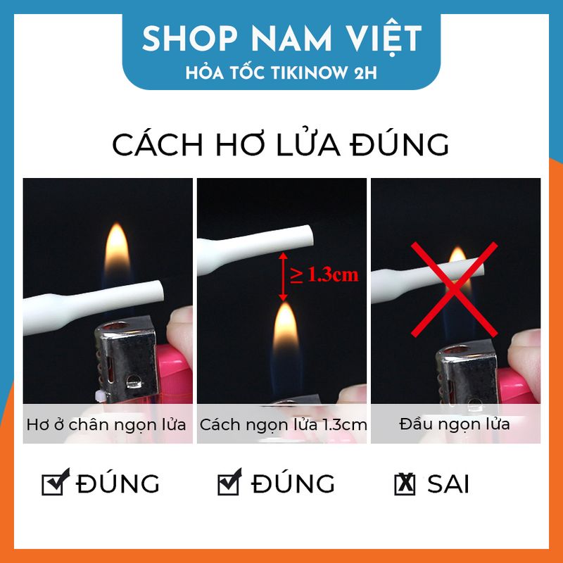 ️ Cách sử dụng: Bọc ống co nhiệt ở quanh vị trí cần bảo vệ. Dùng khò nhiệt hoặc hộp quẹt để hơ cho ống co lại. Lưu ý chỉ hơ ở chân ngọn lửa hoặc cách ngọn lửa 1.3cm. Không hơ trực tiếp ở đầu ngọn lửa.