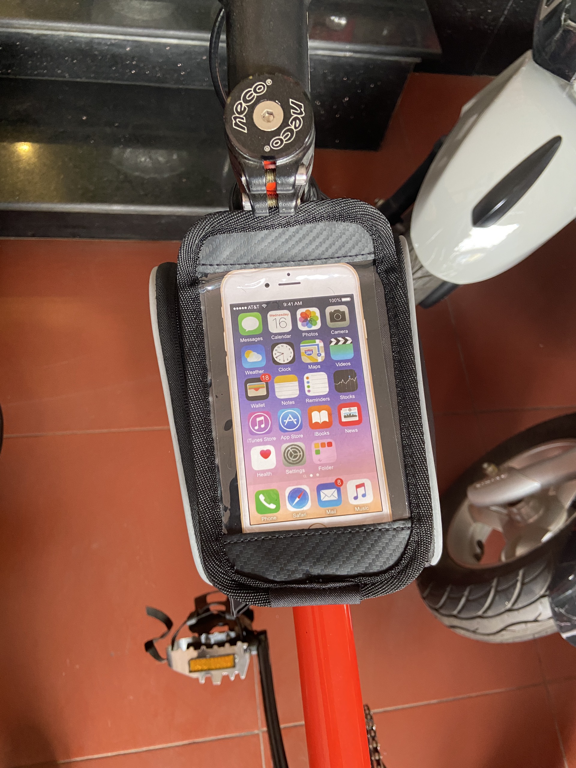 - Nó rất thuận tiện như khi bạn dừng lại đi xe đạp và đi ăn trưa, đi mua sắm hoặc đi bộ xung quanh, bạn có thể chỉ cần lấy nó ra từ chỗ ngồi của bạn và đi đến bất cứ nơi nào bạn muốn. -Vừa đi xe vừa cảm ứng trên điện thoại, xem thông báo, cuộc gọi tin nhắn dễ dàng qua cửa sổ cảm ứng trong suốt -Làm túi cầm tay cực thời trang, cá tính