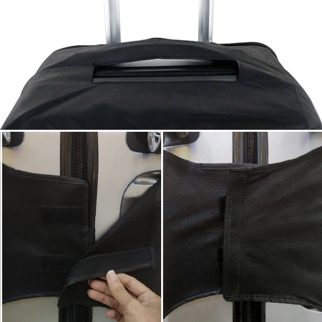 Thiết kế bao trùm được cả chiếc vali của bạn nhưng vẫn còn chừa không gian cho bánh xe di chuyển và tay xách cũng như cần kéo giúp bạn dễ dàng thao tác kéo đẩy vali. Đặc biệt bên dưới bao trùm vali có miếng dán cố định giúp bao trùm vali thêm chắc chắn.
