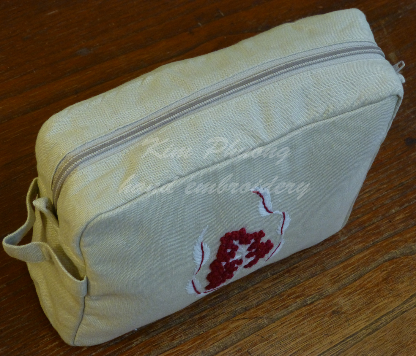 Sản phẩm Túi mỹ phẩm nhỏ thêu tay Mẫu CỌ CỔ ĐỎ Vải Linen Màu vải Trắng Kích thước chung Dài 23cm x Rộng 16cm x Cao (Đáy) 4cm Hình dạng Chữ nhật, có