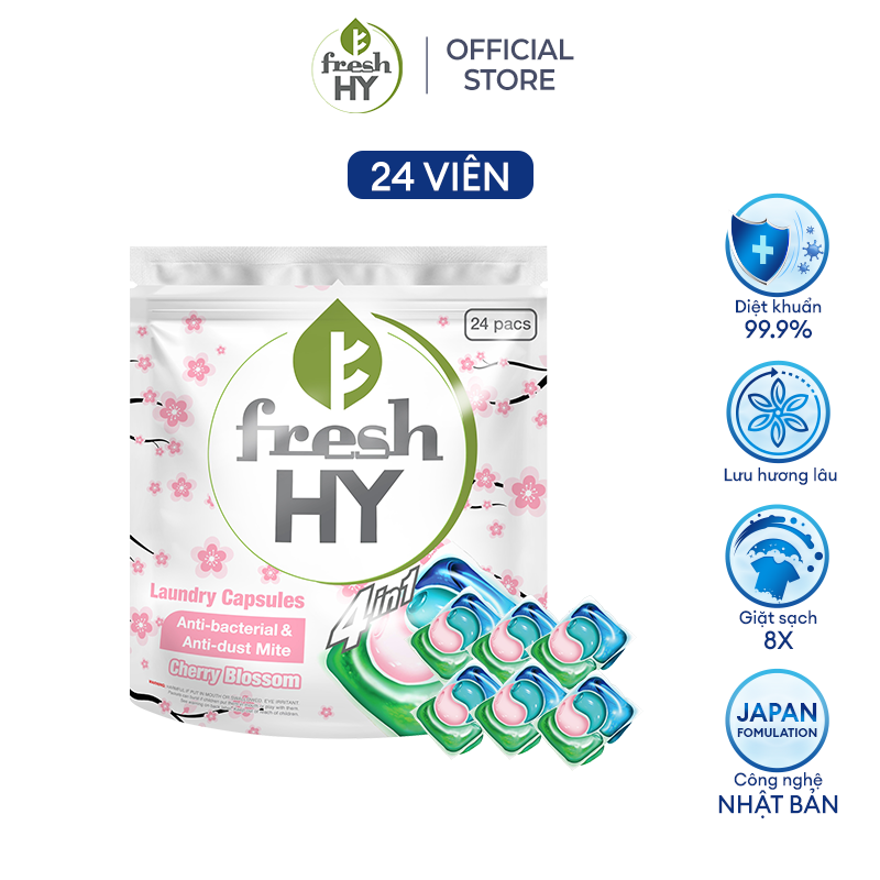 ✨Túi Viên Giặt Xả Tiện Lợi 4 trong 1 Fresh Hy Hương Hoa Công Nghệ Nhật Bản (24 Viên/ Túi)
