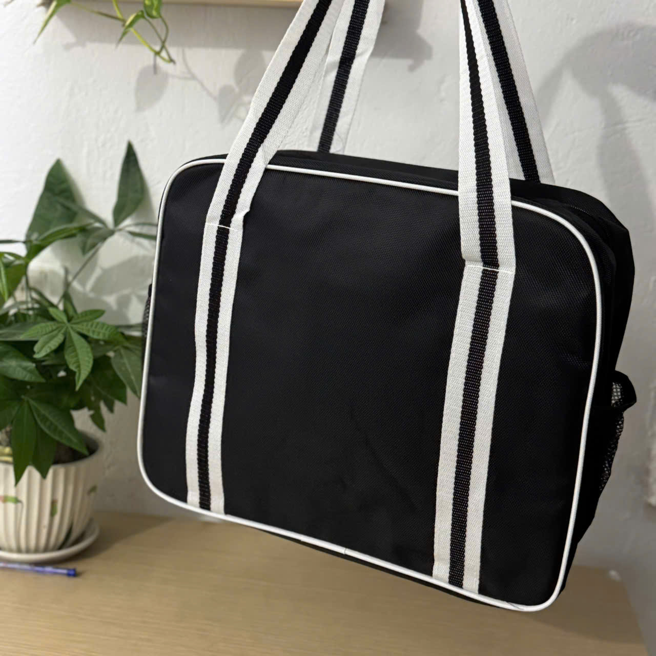 2 Ngăn nhỏ 2 bên đựng phụ kiện, bình nước … Ngoài ra bên trong túi có 1 túi nhỏ đựng thêm phụ kiện, chìa khóa, ví tiền …