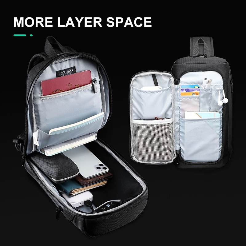 Túi đeo hông/đeo chéo vai đa năng, có cổng sạc USB tiện dụng – OZUKO MIXBOX