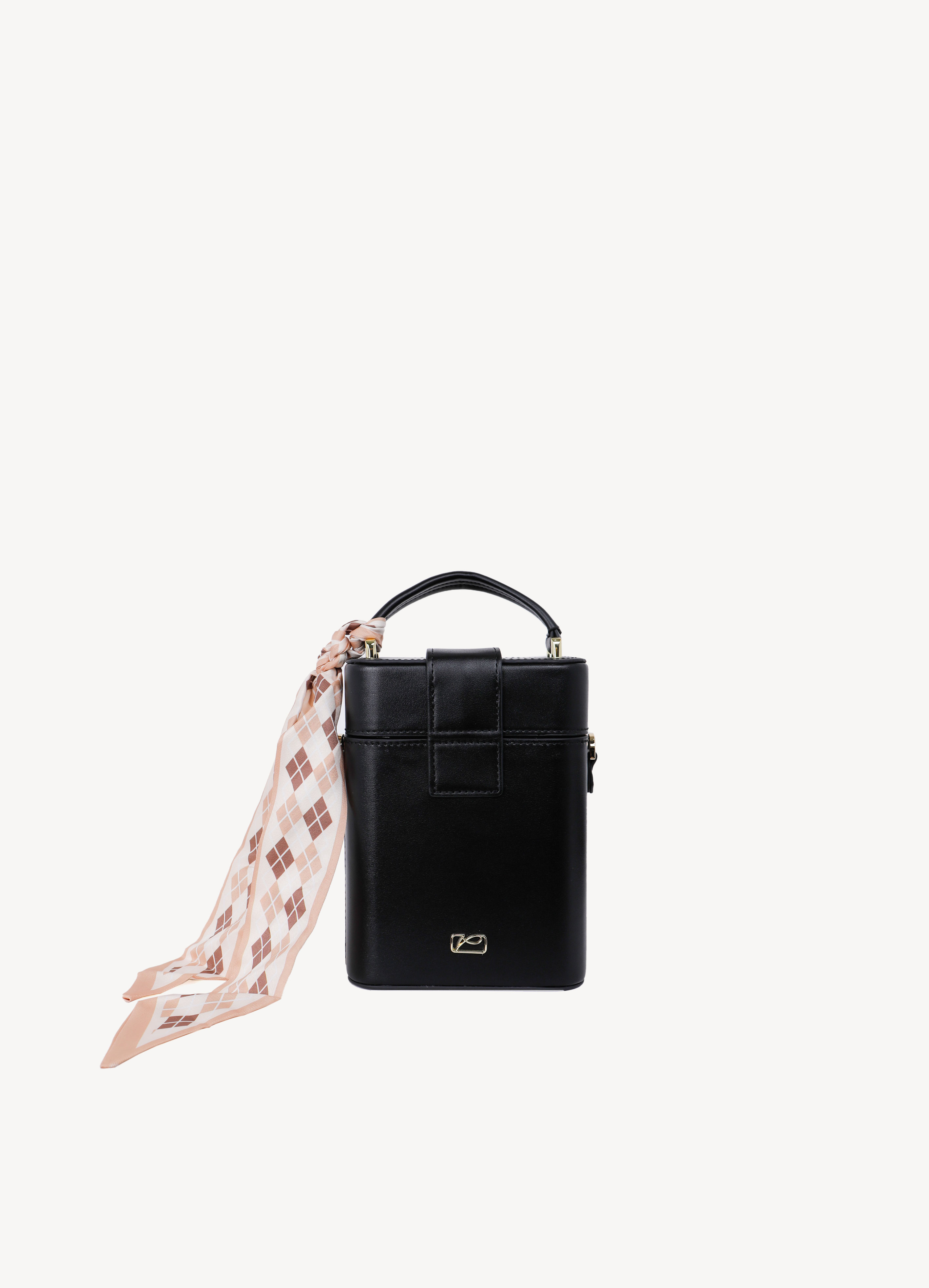Sản phẩm hình hộp độc đáo kèm dây đeo chéo bằng da tiện lợi.