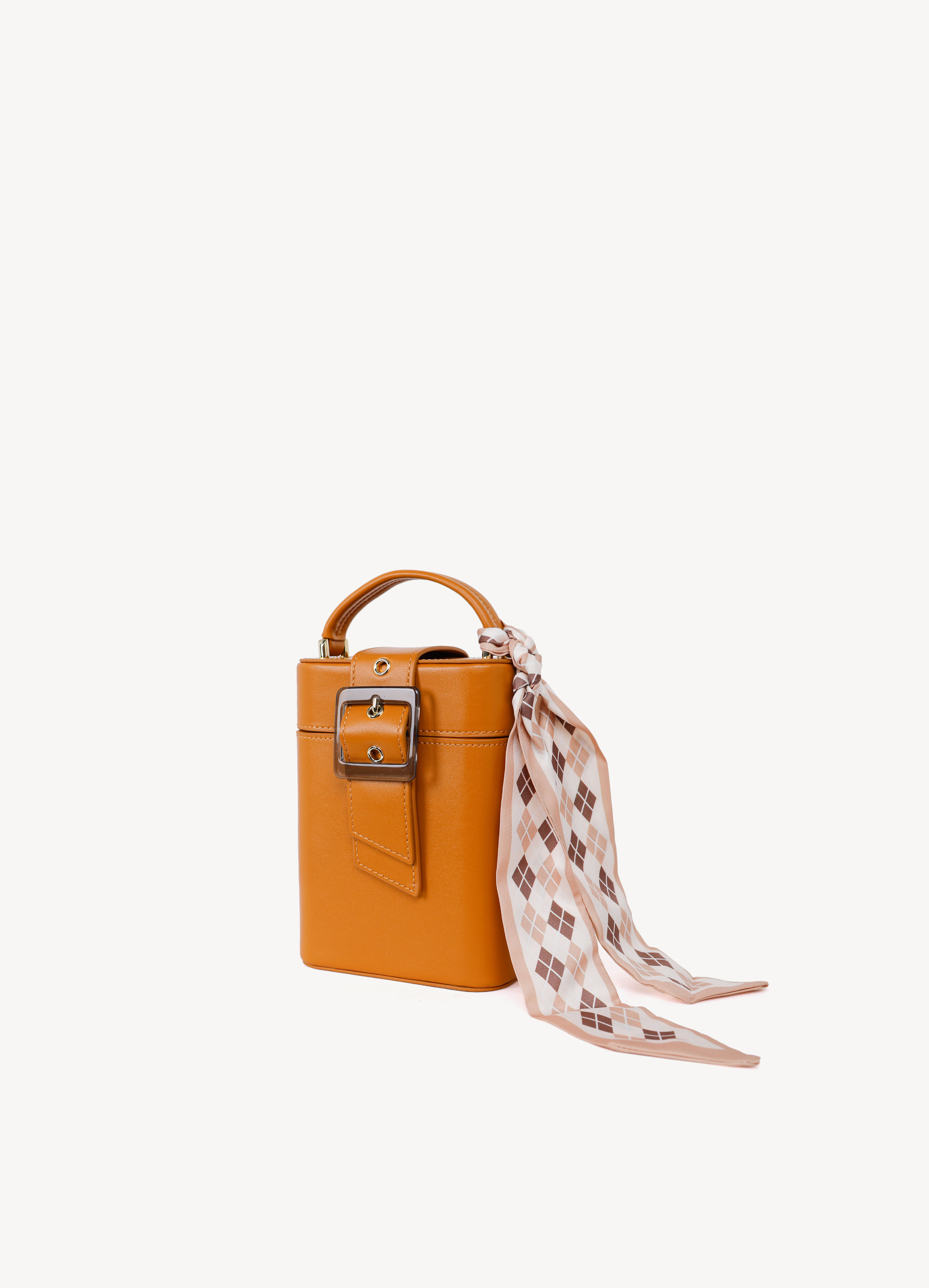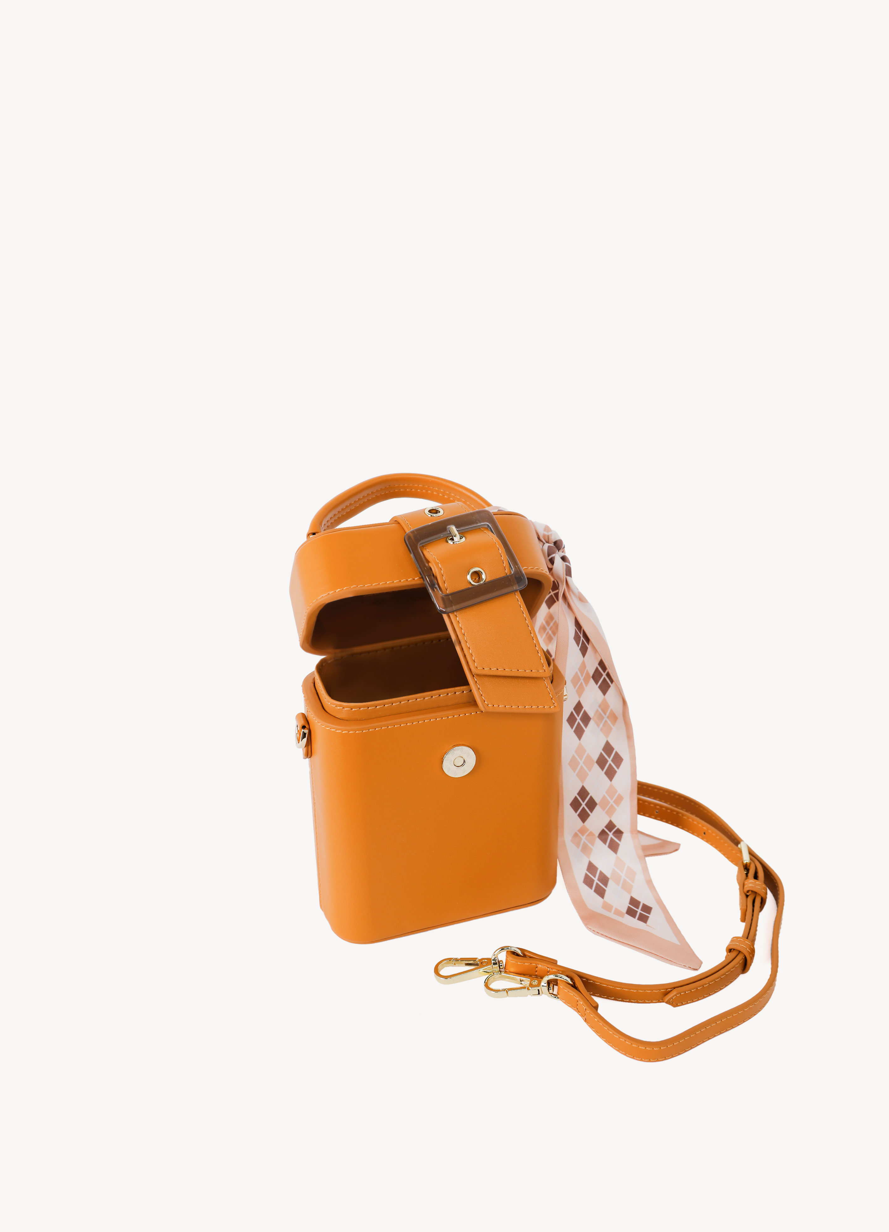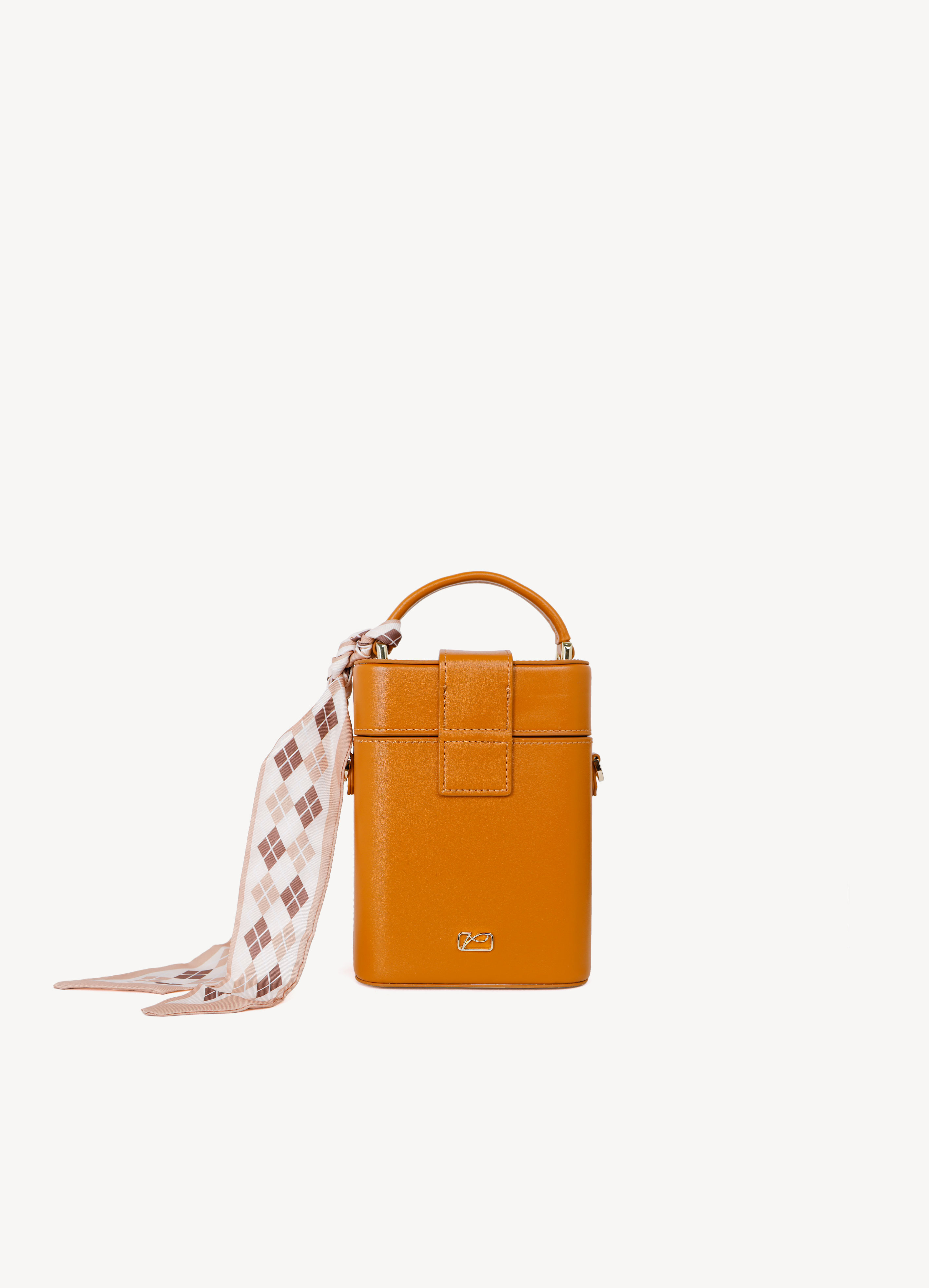 Sản phẩm hình hộp độc đáo kèm dây đeo chéo bằng da tiện lợi.