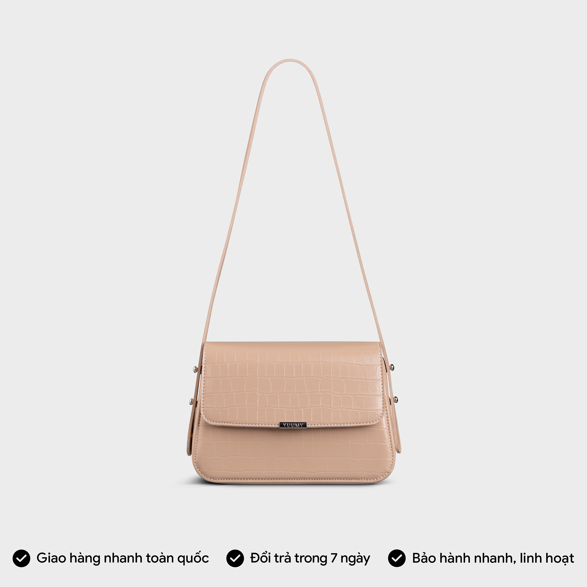 Túi đeo vai da nữ thời trang Yuumy YN198 có phom dáng cứng cáp. Túi sử dụng chất liệu da tổng hợp cao cấp dập họa tiết vân vảy như một điểm điểm nhấn cá
