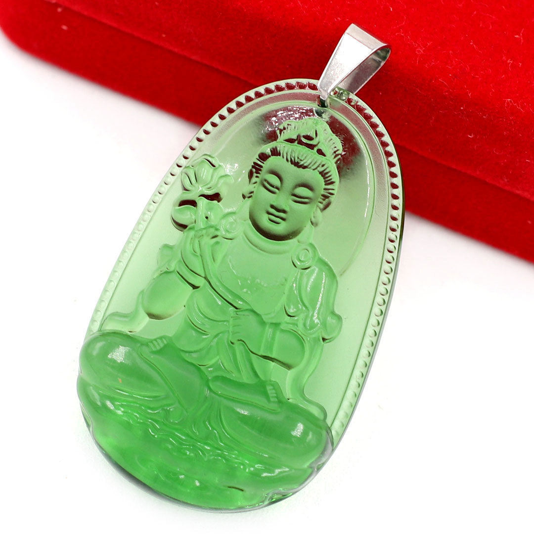 Mặt Phật Bà đứng Cẩm Thạch xanh trắng lí - Chất liệu: Ngọc Cẩm Thạch tự nhiên. - Màu sắc: Xanh lí phớt trắng - Kích thước: ngang 49mm, cao 23mm, dày 4mmx8mm - Mã kiểm định: 86691 - Tiêu chuẩn
