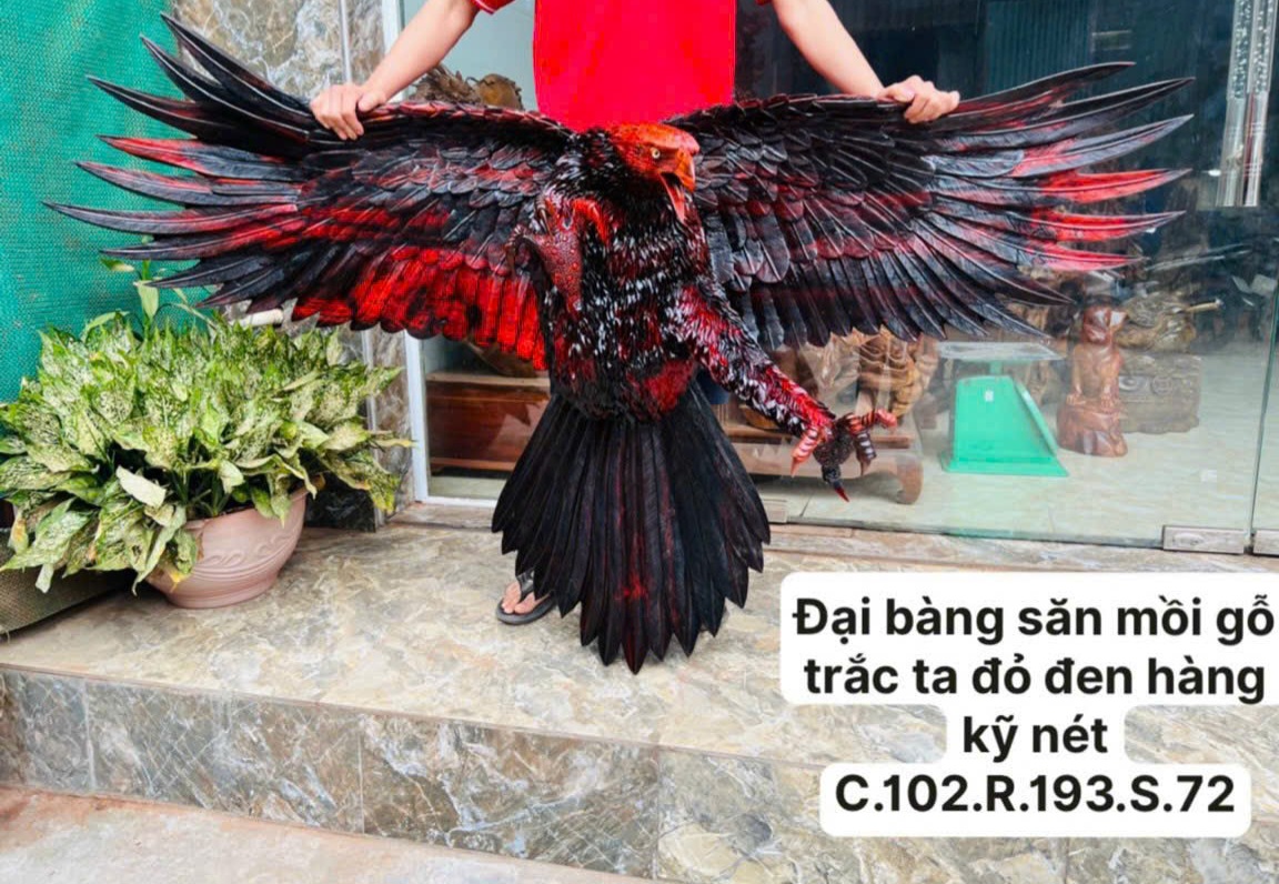 Mua tại TiktokTượng chim đại bàng chúa tể bầu trời được làm bằng chất liệu gỗ trắc đỏ đen tự nhiên 100% Kt cao 102 rộng 193 sâu 72cm _ Tượng được điêu khắc chạm trổ vô cùng tỉ mỉ ,tinh xảo kỳ công .Đi hầu hết cả mọi chi tiết góc ngách nội dung hoa văn của tượng đều được gọt tỉa chỉnh sửa sắc nét hoàn toàn bằng tay thủ công .Tượng đại bàng được chế tác và hoàn thiện do bàn tay khối óc tài hoa .Từ những người thợ giàu kinh nghiệm cũng như tay nghề cao trong làng nghề truyền thống