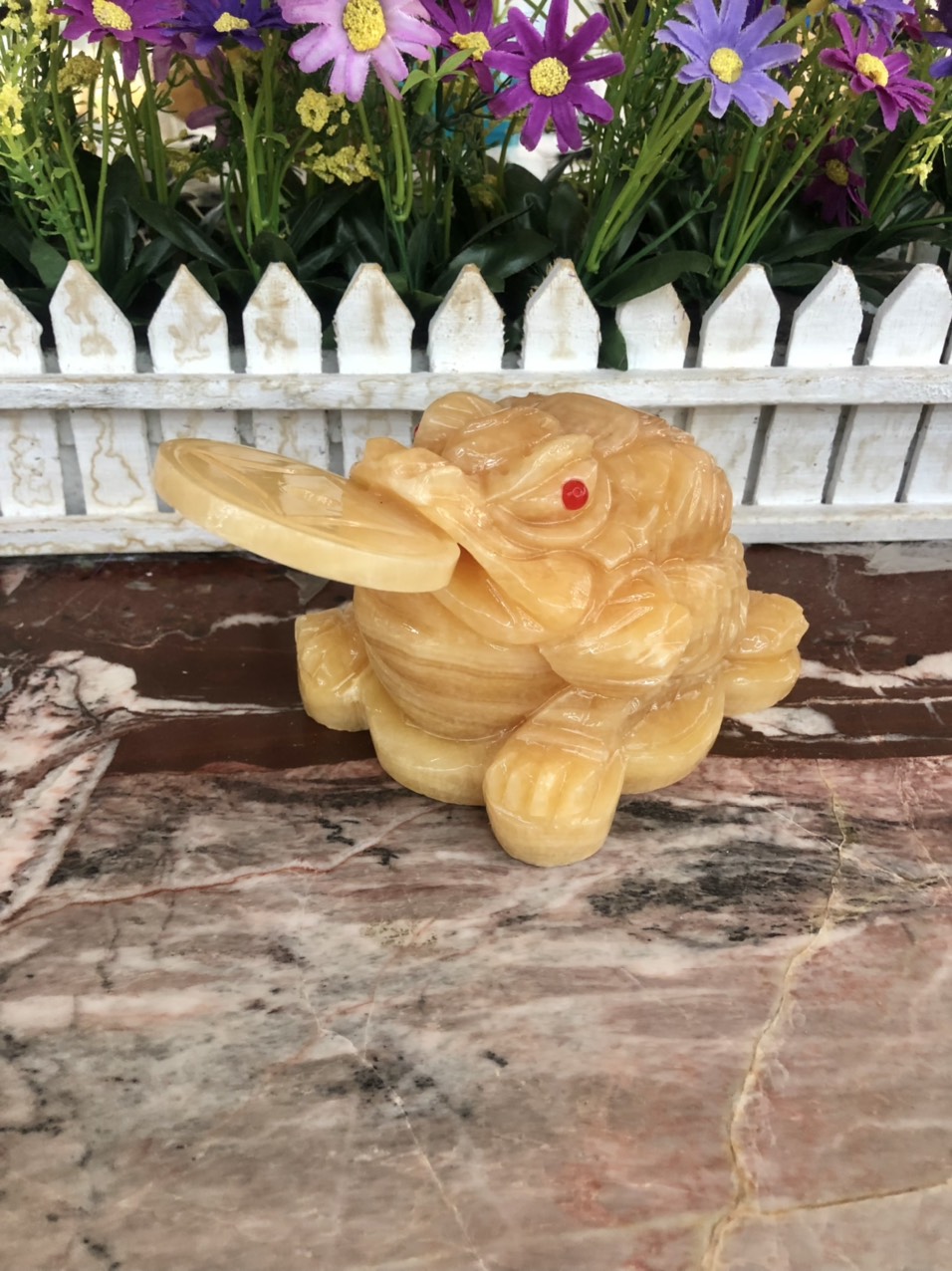 Chất liệu: Đá ngọc Onyx Kích thước: Dài 15cm x Rộng 13cm x Cao 12cm Khối lượng: 3,8 kg Thiềm Thừ được người xưa gọi là Cóc tài lộc, Cóc ba chân hay Cóc Thiềm
