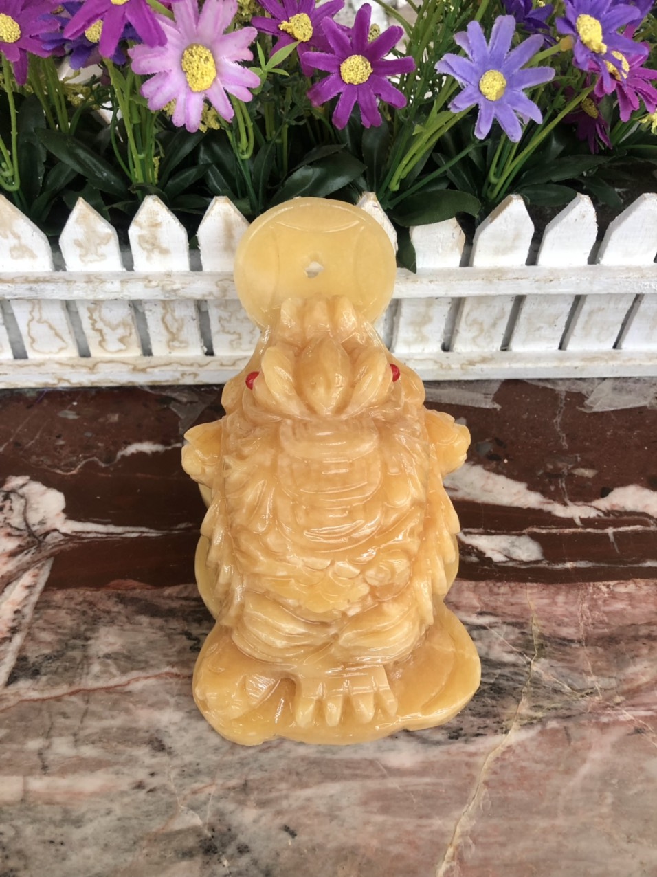 Chất liệu: Đá ngọc hoàng long Kích thước: Dài 12 cm x Rộng 8 cm x Cao 8,5 cm Khối lượng: 890g Trong truyền thuyết Long Sinh Cửu Phẩm (Chín đứa con của rồng) thì