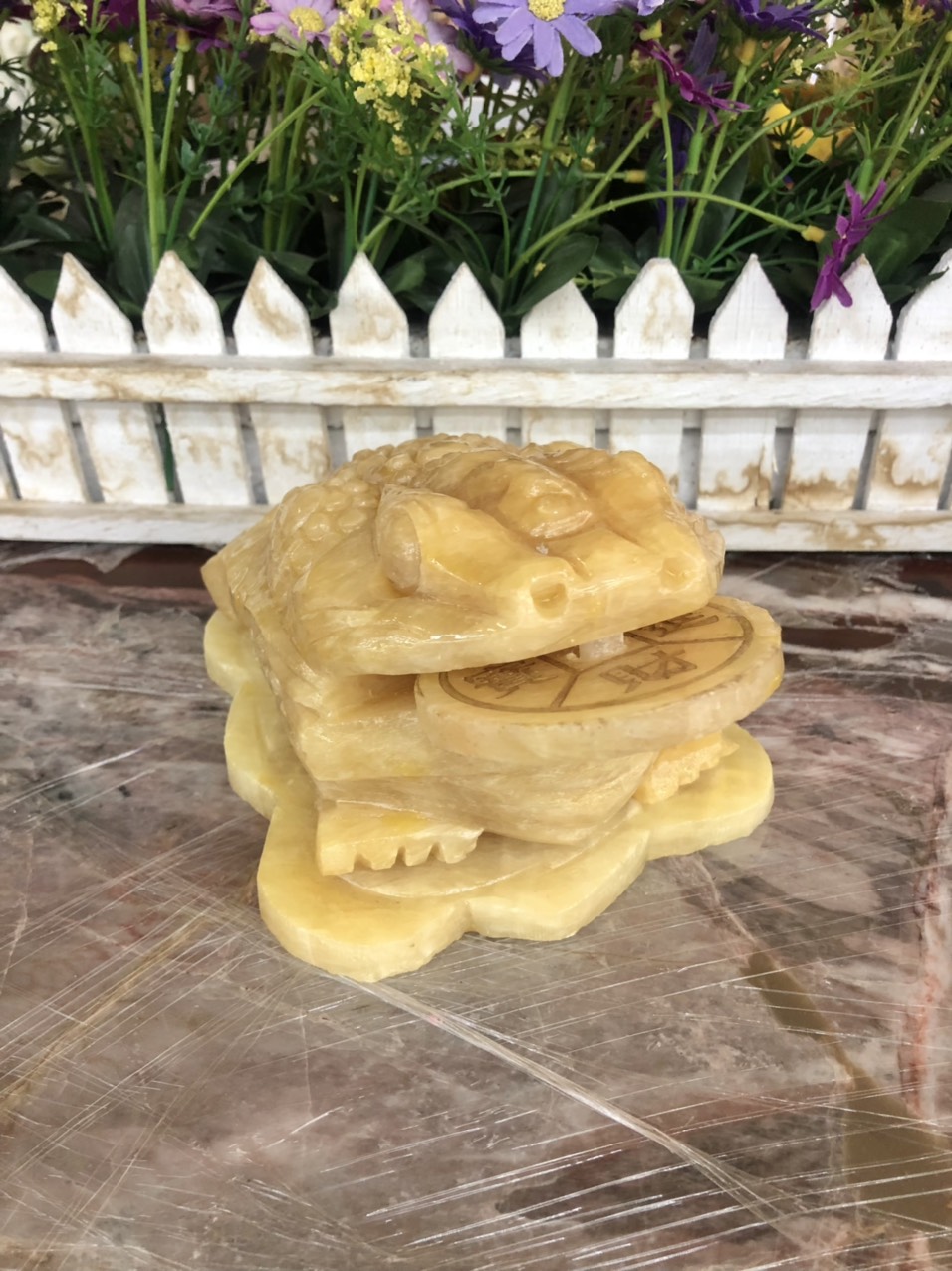 Chất liệu: Đá vàng cà rốt Kích thước: Dài 20 cm x Rộng 11 cm x Cao 11 cm Khối lượng: 3 kg Thiềm Thừ được người xưa gọi là Cóc tài lộc, Cóc ba