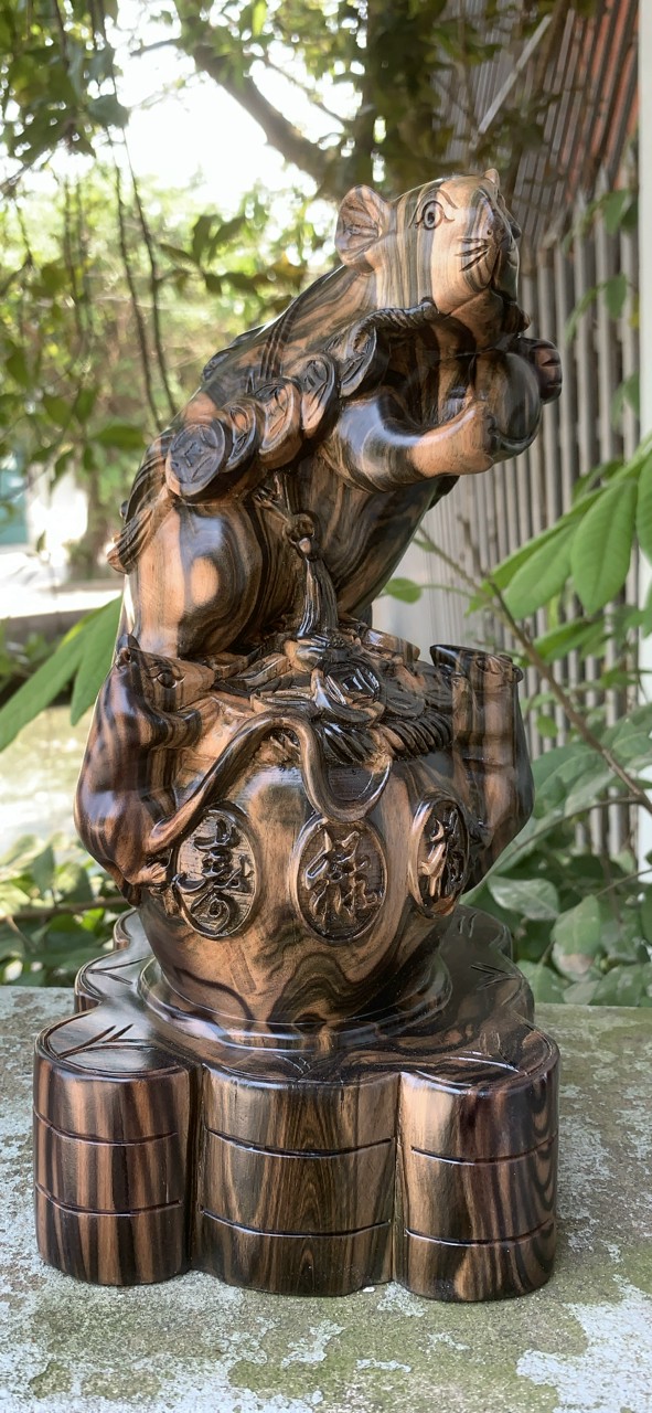 _ Tượng con chuột phong thủy tài lộc được làm bằng chất liệu gỗ mun hoa liền khối tự nhiên 100%