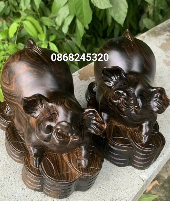 Bộ sưu tập tượng Lợn phong thủy gỗ cao cấp gỗ Trắc và gỗ Mun hoa Lào