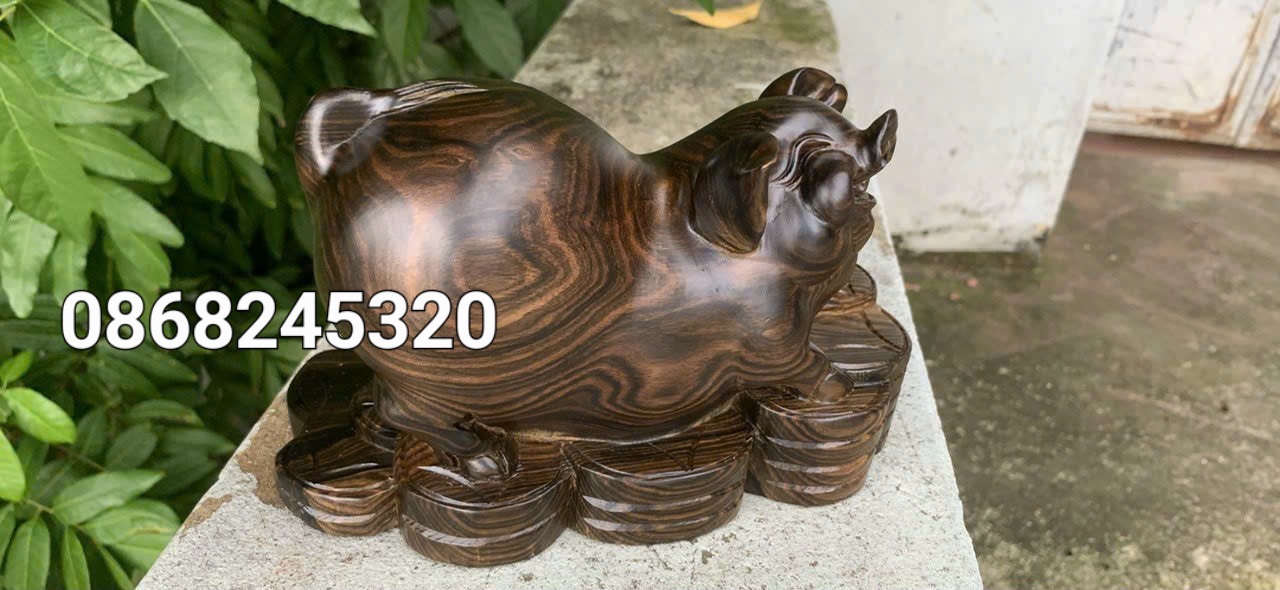 ✨Tượng con heo ( lợn ) phong thủy cầu tài lộc bằng gỗ mun hoa kt 20cm