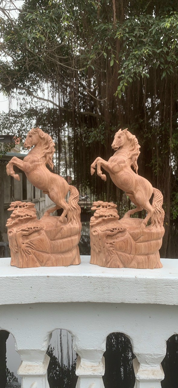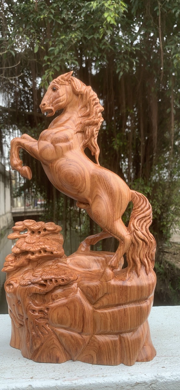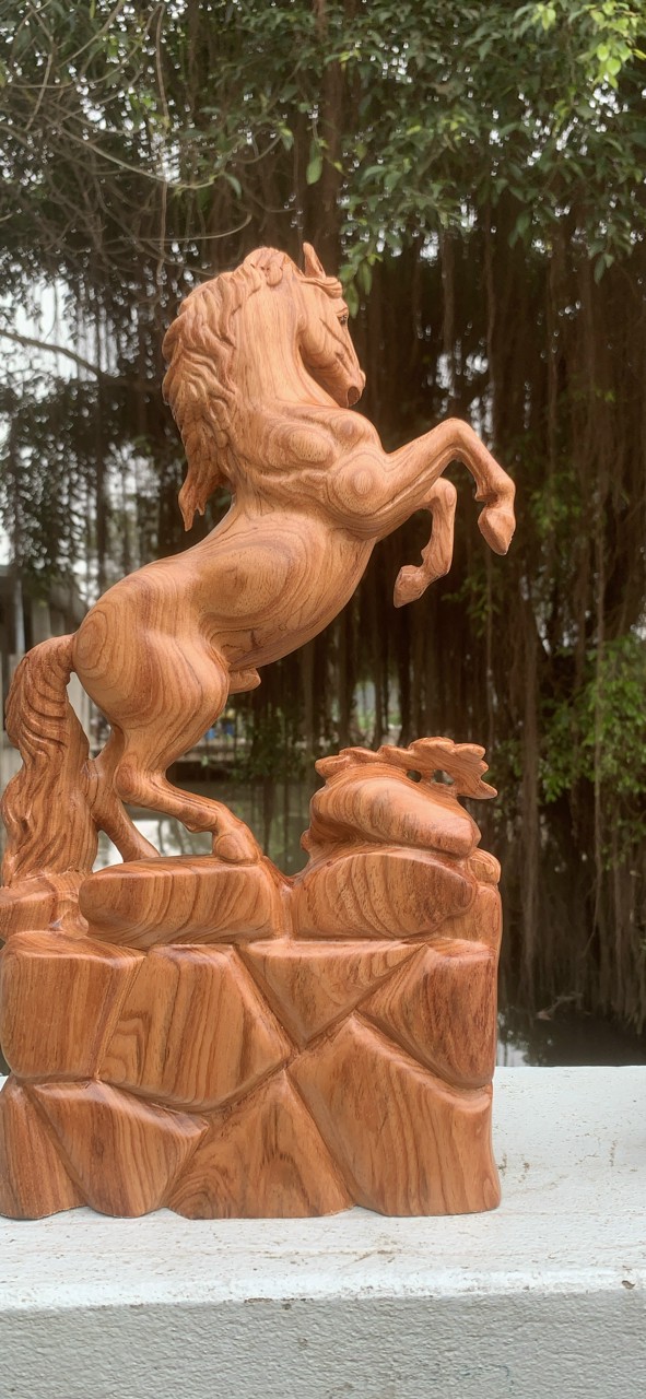 _ Tượng con ngựa nhất mã phi thiên được làm bằng chất liệu gỗ hương đá liền khối tự nhiên 100%