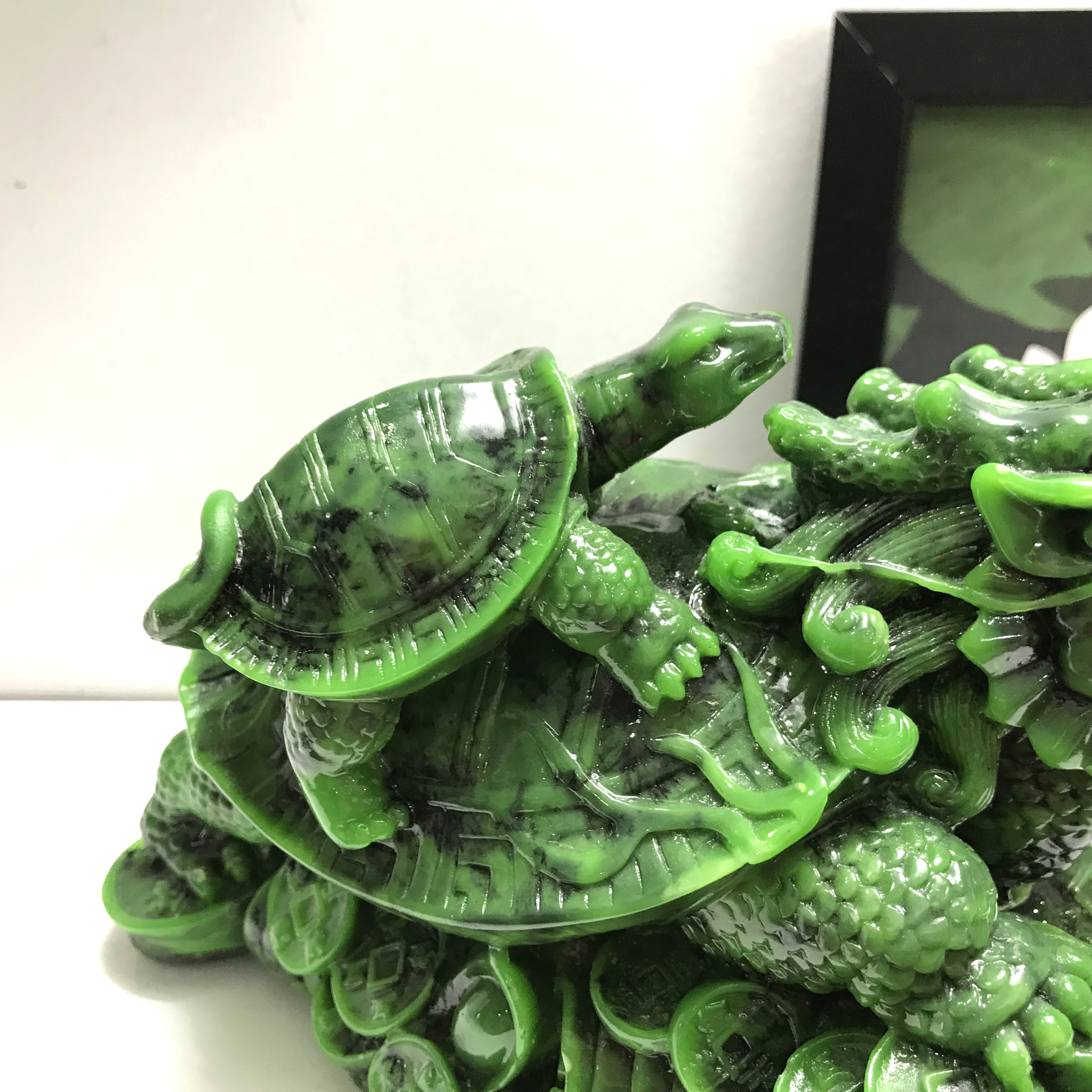 ✨Tượng đá long quy _ Rùa đầu rồng trang trí phong thủy - Long quy cõng rùa con - Dài 20cm - Xanh Lục Bích