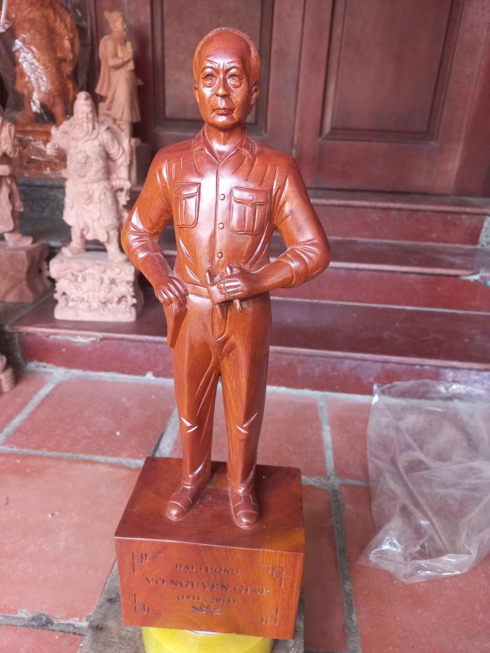 Mua tại TiktokTượng đại tướng võ nguyên giáp được làm bằng chất liệu gỗ hương đá tự nhiên 100% Kích thước cao 50×17×10cm _ Tượng đại tướng võ nguyên giáp được làm và hoàn thiện do bàn tay khối óc tài hoa .Từ những người thợ giàu kinh nghiệm cũng như tay nghề cao trong làng nghề truyền thống .Chính vì thế tượng đại tướng võ nguyên giáp đã đáp ứng đầy đủ những tiêu trí ( Đẹp bền rẻ) Thẩm mỹ nghệ thuật với chất lượng tuyệt vời