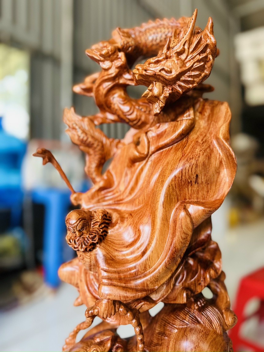 _ Tượng được trạm khắc tỉ mỉ ,tinh sảo kỳ công .Đi hầu hết tất cả mọi chi tiết góc ngách nội dung hoa văn của tượng đều được gọt tỉa chỉnh sửa sắc nét hoàn toàn bằng tay thủ công .Đồng thời tượng được kiểm định kỹ lưỡng khắt khe ,như cho vào thẩm sấy cho gỗ khô kiệt .Mục đích trống dập nứt vênh mo mối mọt ,kết hợp với trà nhám ,đánh giấy giáp nhiều nước sờ mát lạnh .Song cho vào phun lót làm bóng mờ để giữ lại mầu sắc vân gỗ tự nhiên ,Tượng được làm và hoàn thiện ,do bàn tay khối óc tài hoa ,Từ những người thợ dầy dặn kinh nghiệm ,cũng như tay nghề cao trong làng nghề truyền thống  Chính vì tượng đạt ma sư tổ ,trấn nghê ,và rồng đã đáp ứng đầy đủ mọi tiêu trí cần thiết như ( Đẹp bền rẻ ) Thẩm mỹ nghệ thuật với chất lượng tuyệt vời
