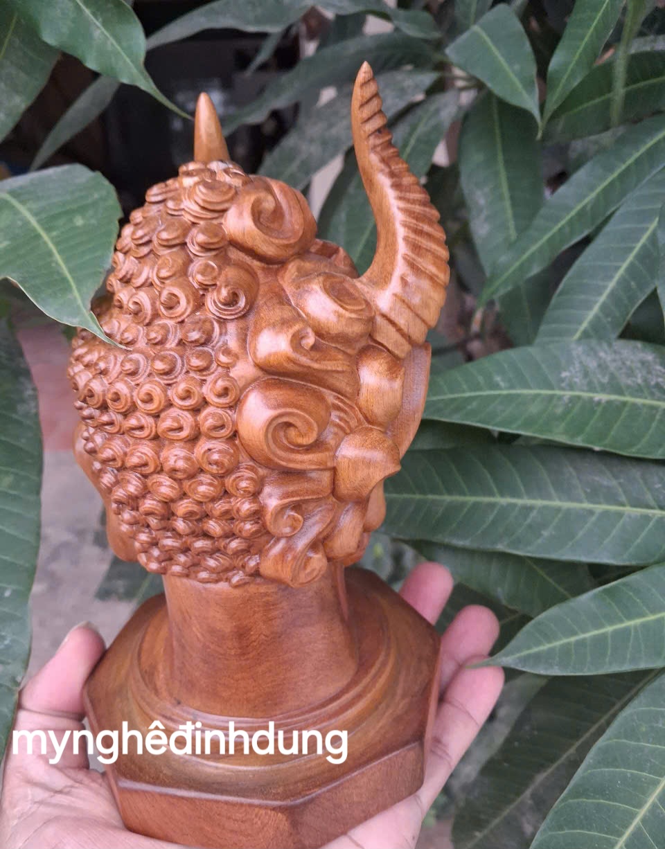được làm bằng chất liệu gỗ bách xanh liền khối tự nhiên 100% _ Kt cao 15×9×9cm _ Tượng được chạm khắc gọt tỉa vô cùng ti mi tinh xảo kỳ công .Đi hầu hết