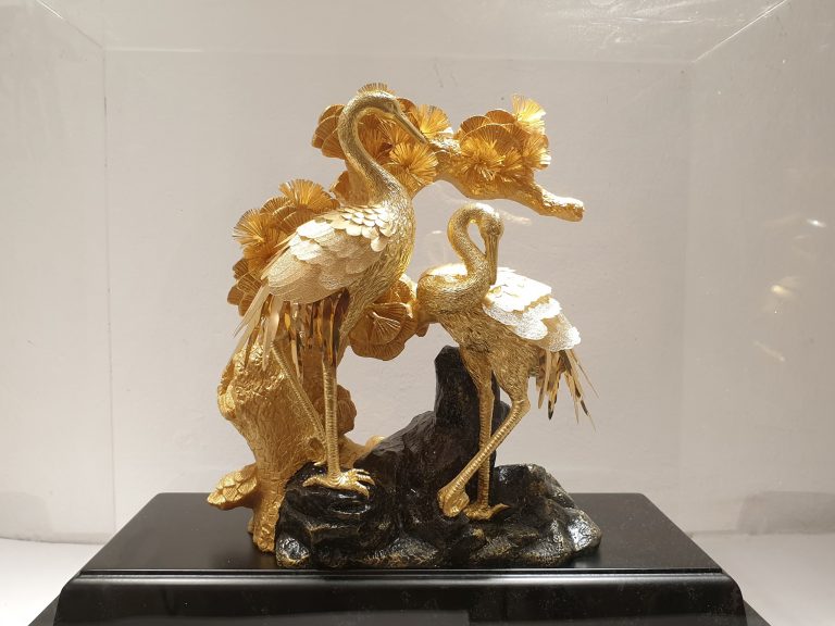 Chim hạc là linh vật có tuổi thọ sống rất lâu vì vậy tượng chim hạc là biểu trưng cho sức khỏe, sự trường tồn. Đồng thời đôi chim hạc là biểu trưng cho cuộc sống hạnh phúc, viên mãn. Vì vậy tượng đôi chim hạc dát vàng là món quà cưới ý nghĩa thay lời chúc trăm năm hạnh phúc. Tượng đôi chim công cũng là món qùa cao cấp tặng cha mẹ vợ dịp tết với ý nghĩa mong cha mẹ luôn khỏe mạnh, sống lâu hưởng phúc cùng con cháu