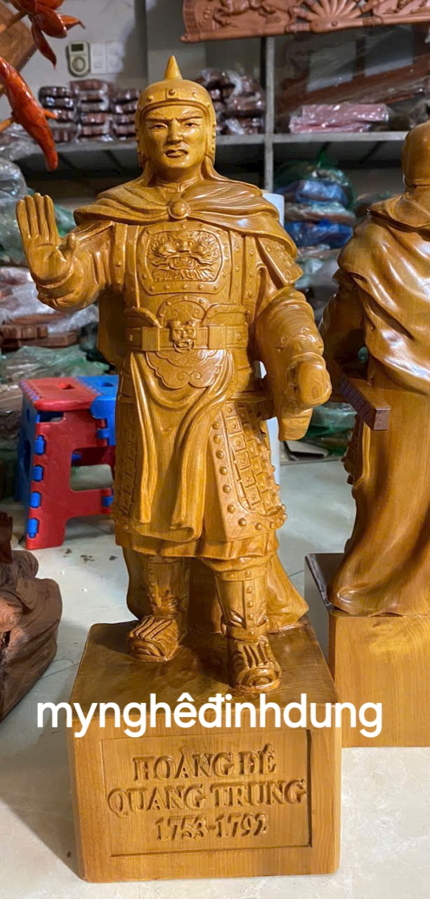 Mua tại TiktokTượng hoàng đế quang trung được làm bằng chất liệu gỗ bách xanh thơm nức liền khối tự nhiên 100% Kt cao 50x16x13cm _ Tượng được chạm khắc vô cùng tỉ mỉ tinh xảo kỳ công. ĐI HẦU tất cả mọi chi tiết góc ngách nội dung hoa văn của Tượng đều được gọt tỉa chỉnh sửa sắc nét hoàn toàn bằng tay thủ công truyền thống.
