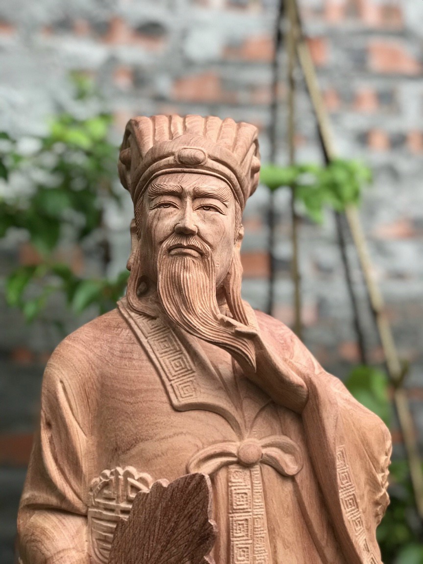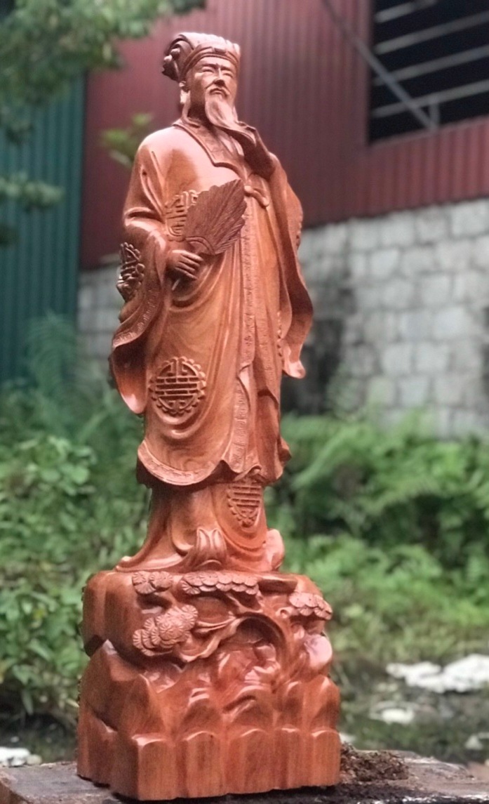 _ Tượng khổng minh gia cát lượng được làm bằng chất liệu gỗ hương đá liền khối tự nhiên 100%