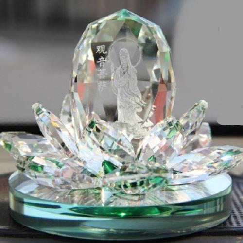 "Thuyết kinh, nhất đóa nhất tòa. Thơm lừng hương pháp, phật bà hóa duyên" chính là hình ảnh Quan Thế Âm Bồ Tát tọa sen hạ trần, ra tay cứu vớt chúng sinh lầm than, ban phước lành. Hình ảnh đẹp đẽ ấy đã được tái hiện lại trong sản phẩm tượng nước hoa quan âm. Tượng nước hoa quan âm được làm từ pha lê khối, được chạm khắc tinh xảo. Các chi tiết góc cạnh kết hợp tài tình, tỉ mỉ nên khi mặt trời chiếu vào, sẽ tạo ra những tia sáng lấp lánh, cực kì huyền ảo.