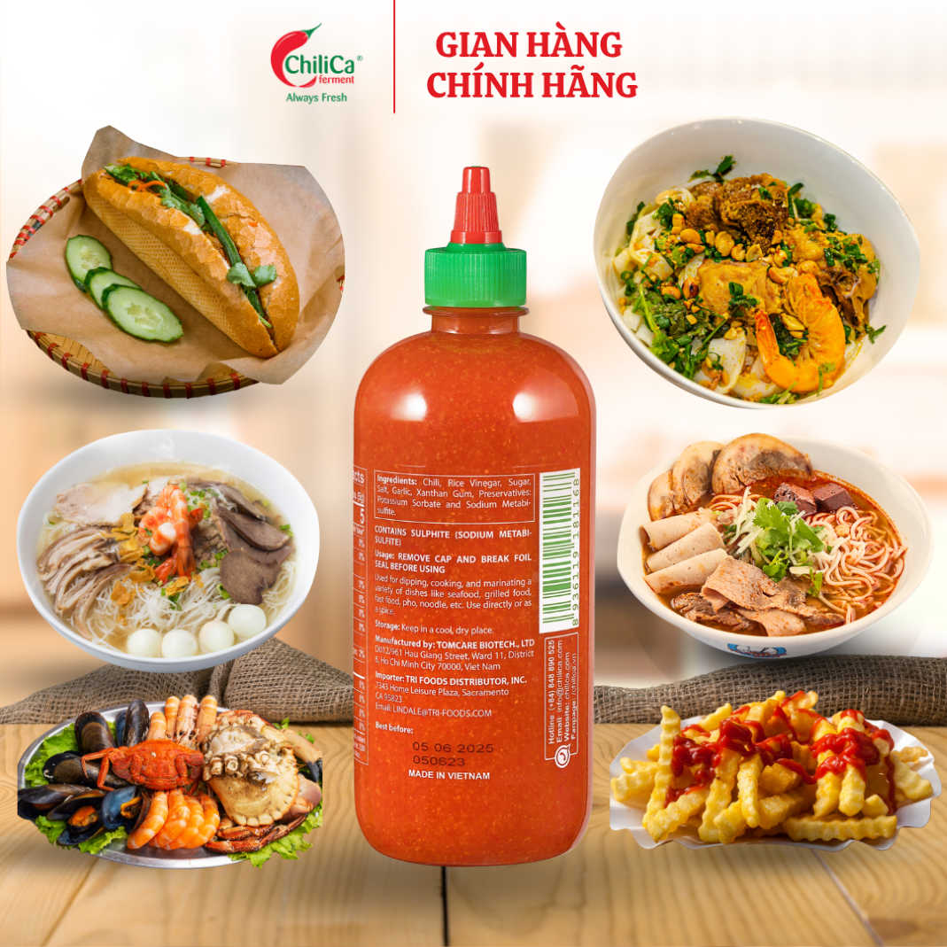 Chua cay mê ngay: Tương Ớt Chilica là sự kết hợp hài hòa của những nguyên liệu tốt và tự nhiên nhất như: ớt chỉ thiên, giấm, đường, muố Ớt sau khi xay được đưa vào ủ lên men tự nhiên nên có mùi thơm, vị chua cay thanh rất dễ chịu;đáp ứng mọi tiêu chuẩn khắt khe cũng như khẩu vị của người sành ăn.
