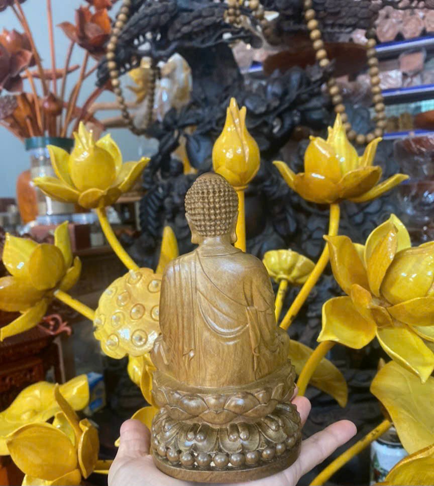 ✨Tượng phật adi đà mini để ôtô ,bàn làm việc ,bàn học,láp tốp ...bằng gỗ bách xanh thơm nức kt cao 15×9×8cm