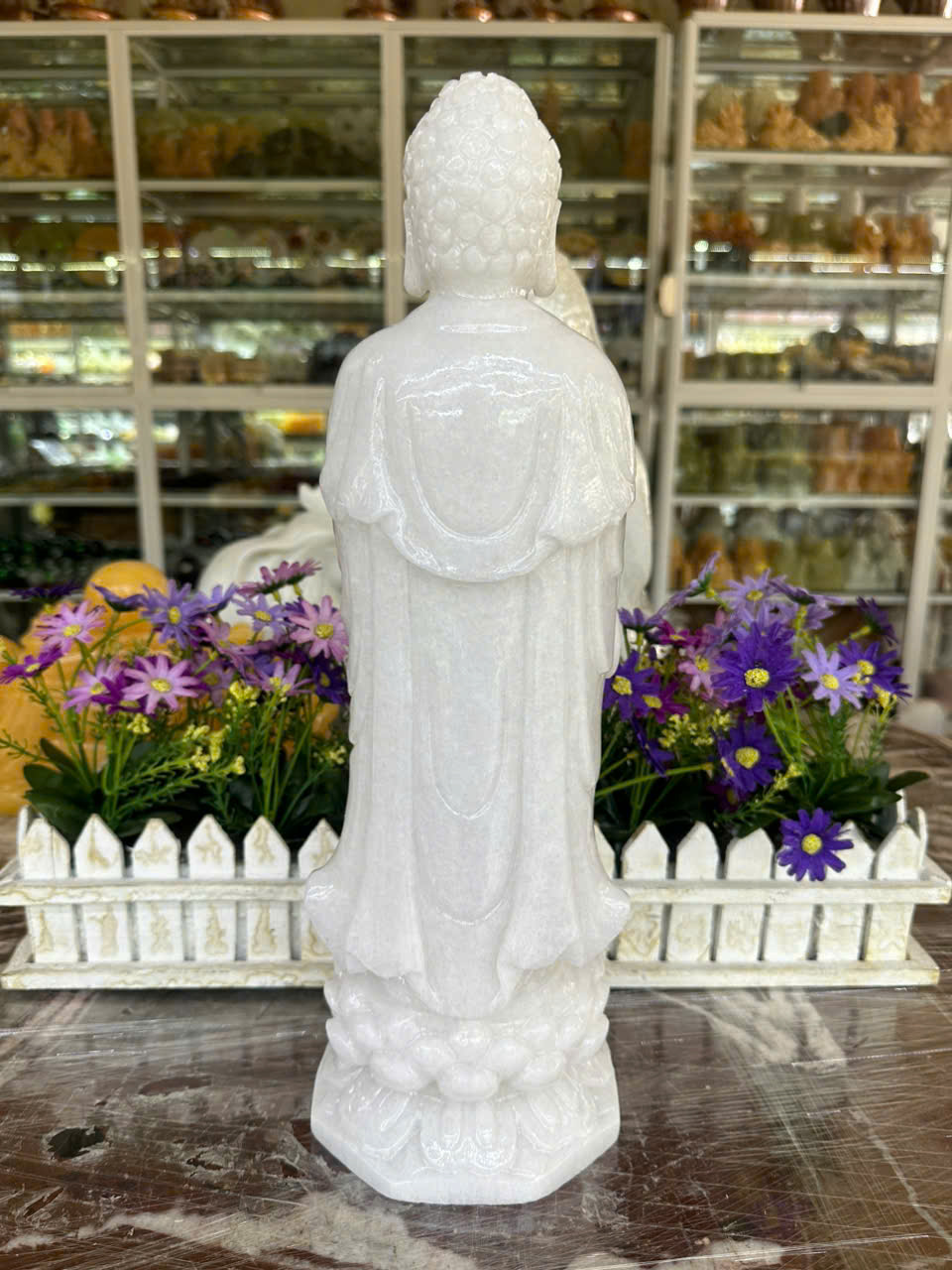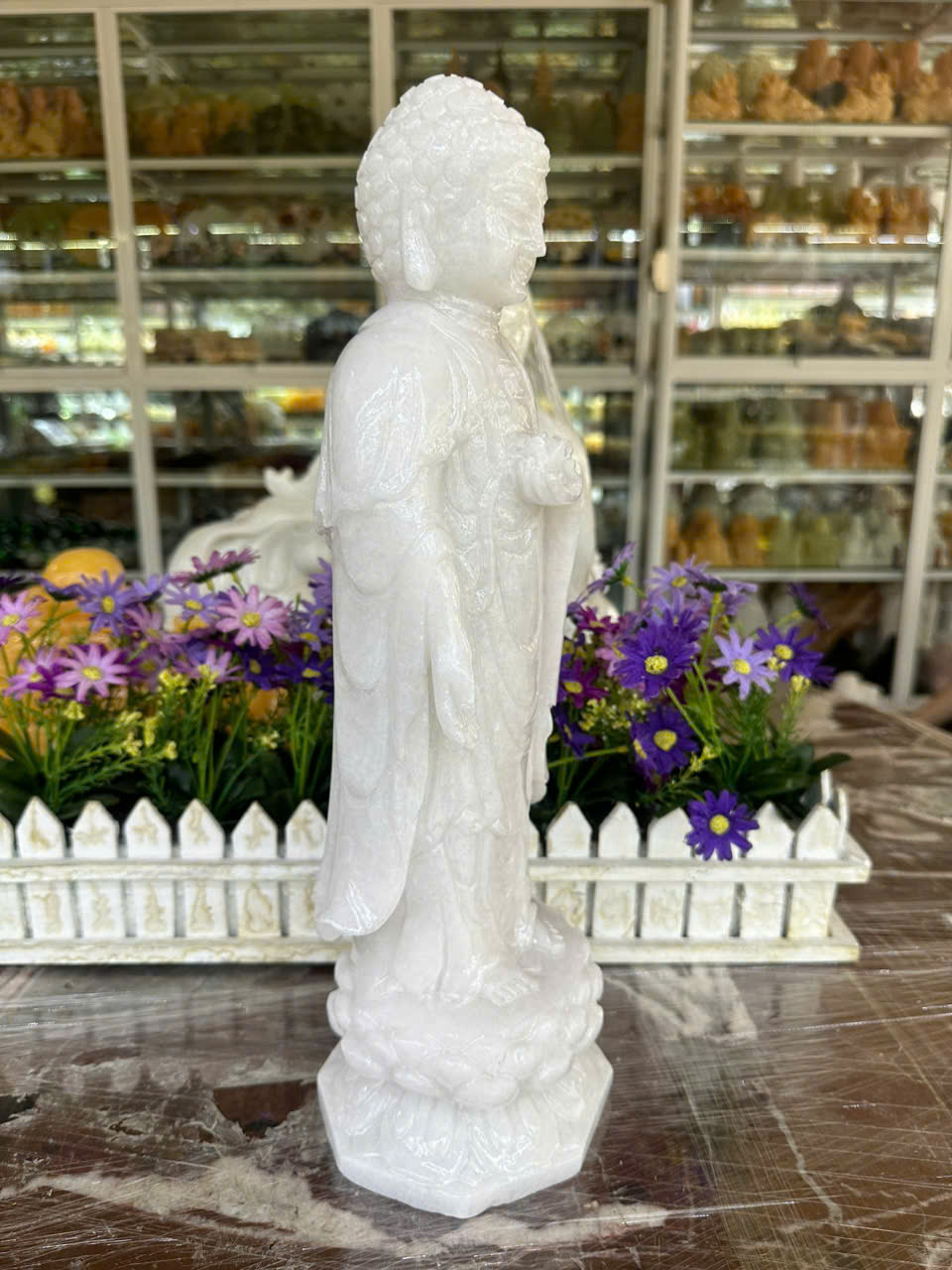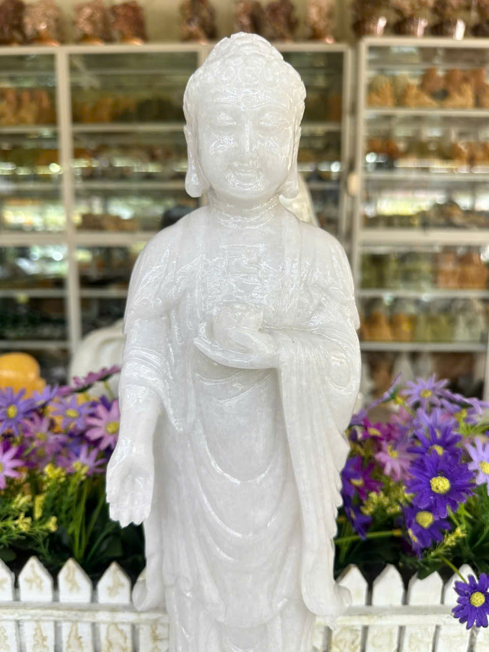 ✨Tượng phật Adida đứng trên đài sen đá cẩm thạch trắng