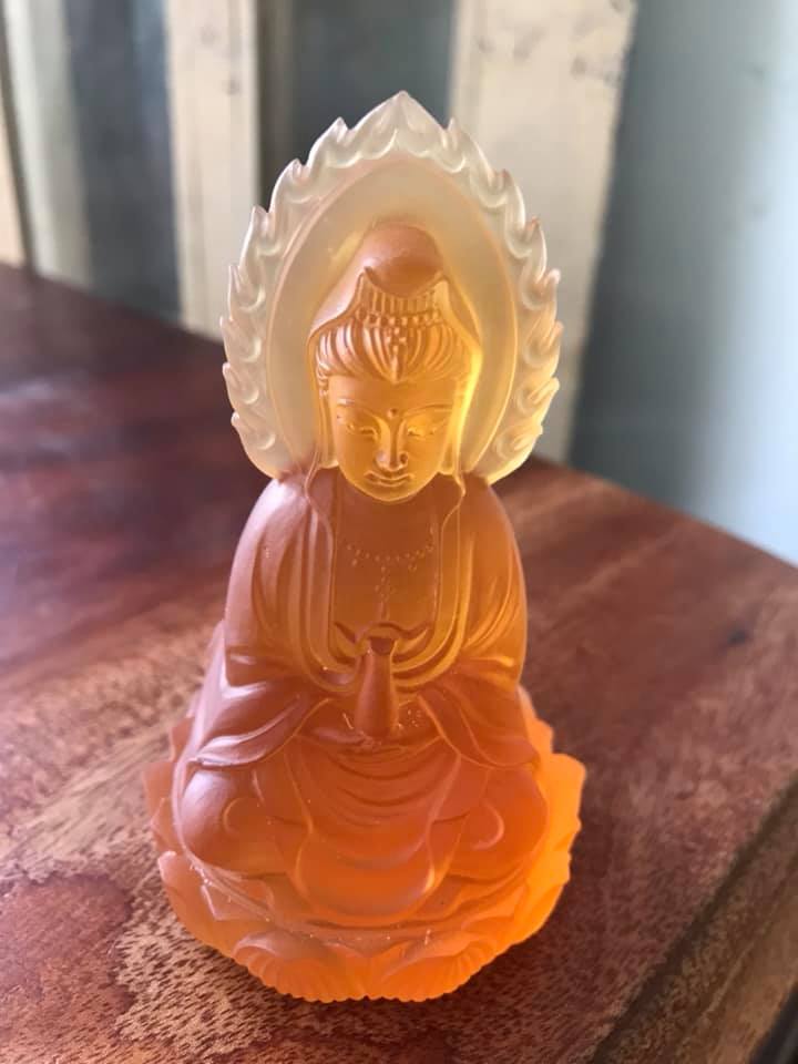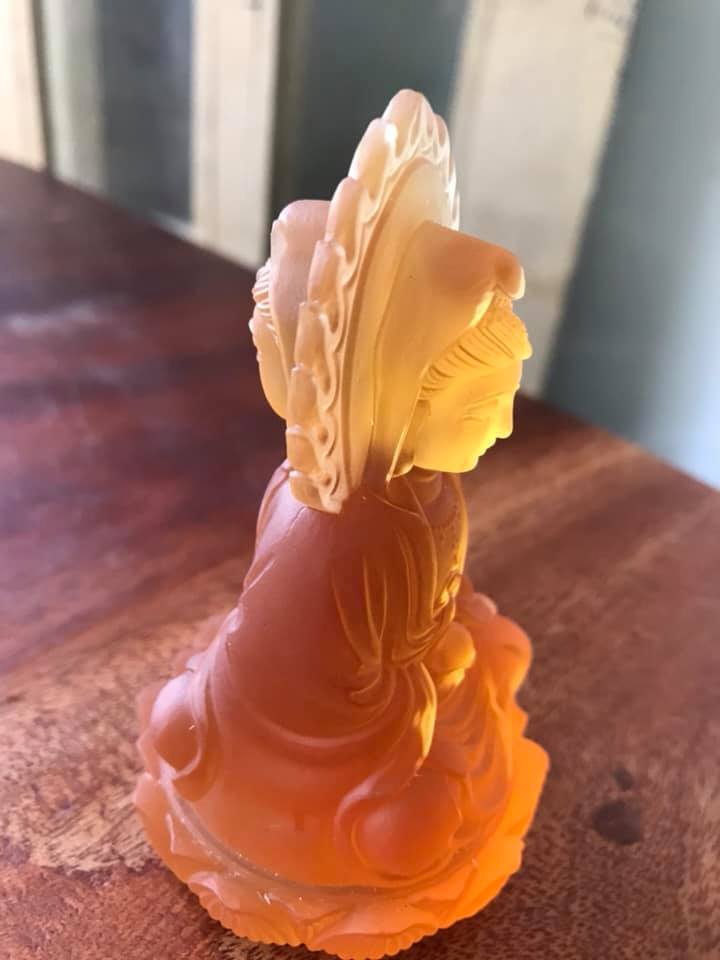 TƯỢNG PHẬT BÀ QUAN ÂM 2 MẶT ĐÁ LƯU LY VÀNG ĐẬM ĐỂ TRONG XE HƠI 10cmx6cm - HÀNG PHONG THUỶ SUNNY Q8