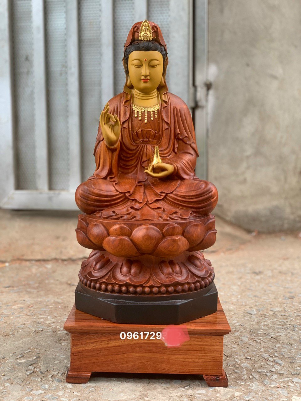 Tượng Phật Bà được chạm khắc vô cùng tỉ mỉ , nổi bật thần thái “ từ bi hỉ xả “ của Phật Bà Quan Âm luôn che chở, cứu giúp chúng sinh. Tượng có