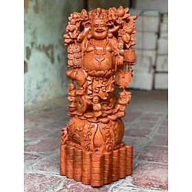 ✨TƯỢNG PHẬT DI LẶC NGŨ PHÚC BẰNG GỖ HƯƠNG ĐÁ KT 60×25×15CM